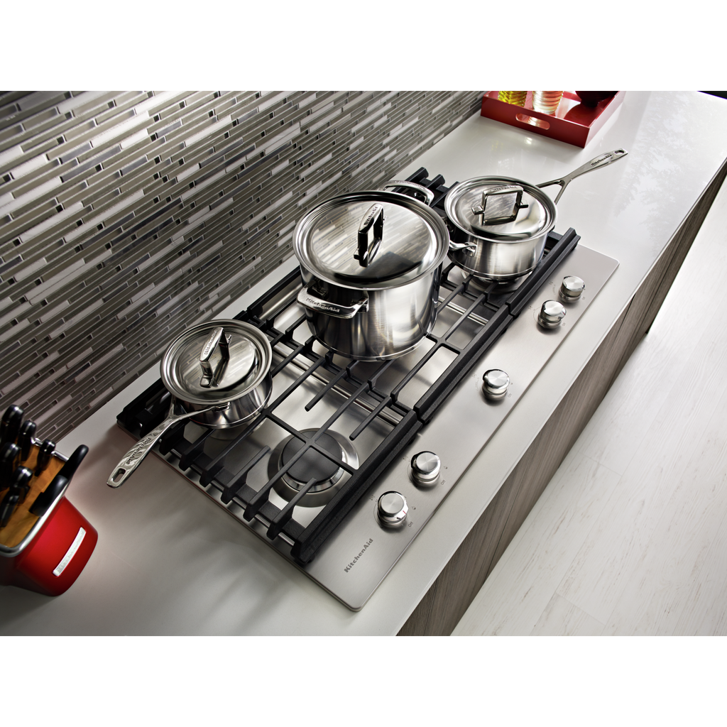 Allows installation over any KitchenAid regular 36- or 30-inch range or cooktop, and some commercial-style cooking surfaces with outputs up to 65K BTU.