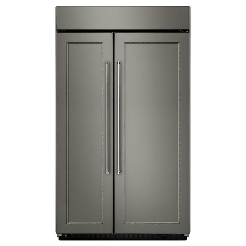 A bold blend of professionally-inspired styling and sleek touches for the home. This striking French Door Bottom Mount refrigerator features Satin Textured Handles with iconic KitchenAid Brand Medallions and the KitchenAid® Badge, a symbol of uncompromise.