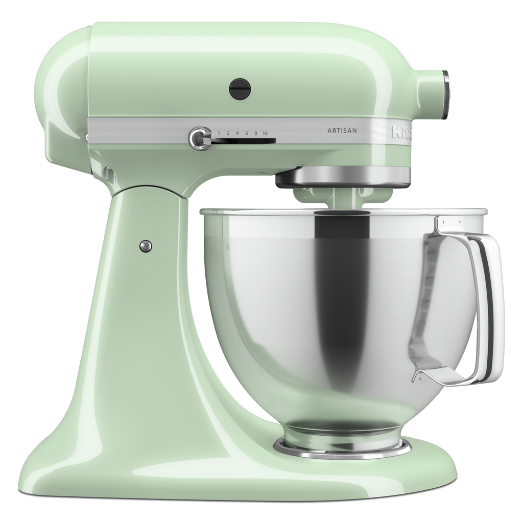 Whether you need 9 dozen of your signature chocolate chips cookies* or several pounds of shredded chicken for Taco Tuesday, the KitchenAid® Artisan® Series Tilt-Head Stand Mixer with Premium Accessory Pack has the capacity and tools for every occasion. This model includes both a 3 and 5 quart bowl, so you can do more - mix up batter in one and then whip up a silky frosting in the other. In addition, the exclusive accessory pack includes a flex edge beater, pastry beater, dough hook, wire whip and redesigned secure fit pouring shield. This durable tilt-head stand mixer was built to take it all on, and features 10 speeds to gently knead, thoroughly mix andwhip ingredients for a wide variety of recipes. *Using the flat beater; 28g dough each. Pistachio.