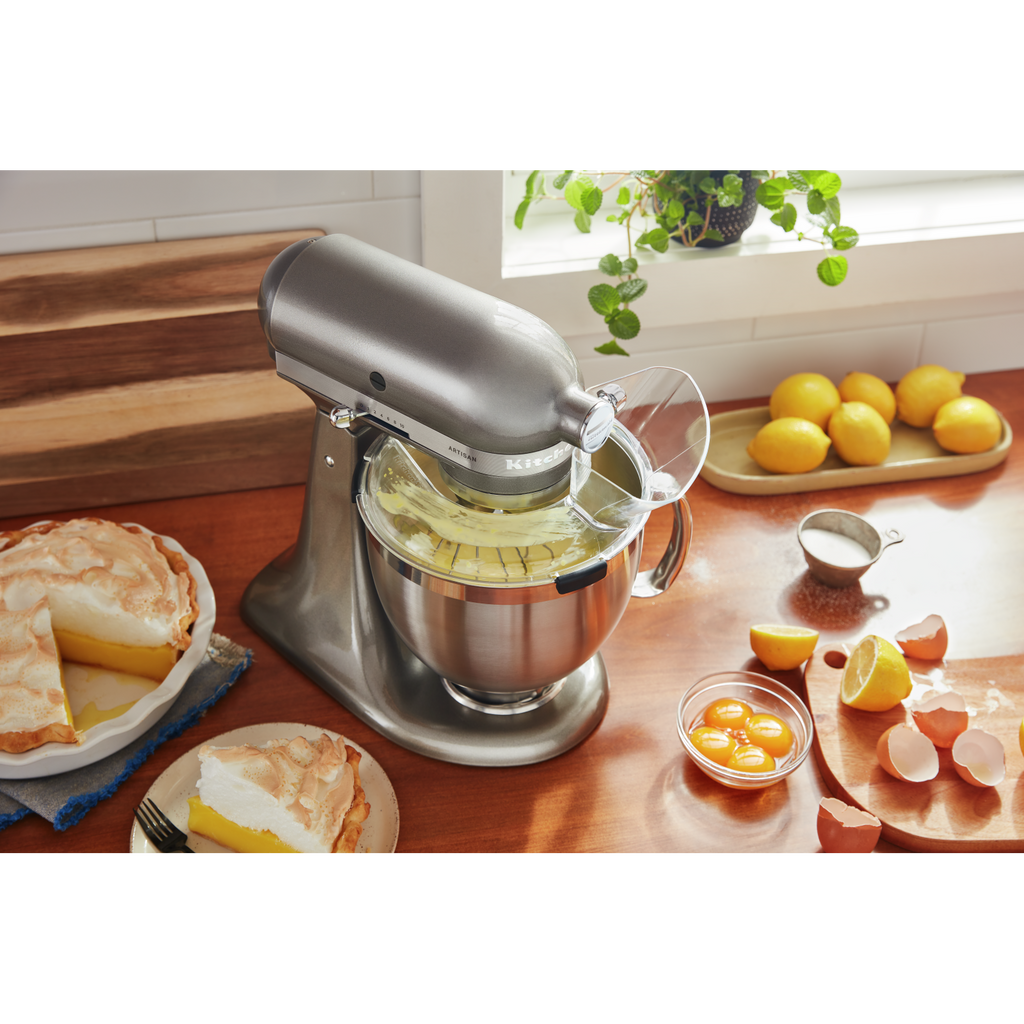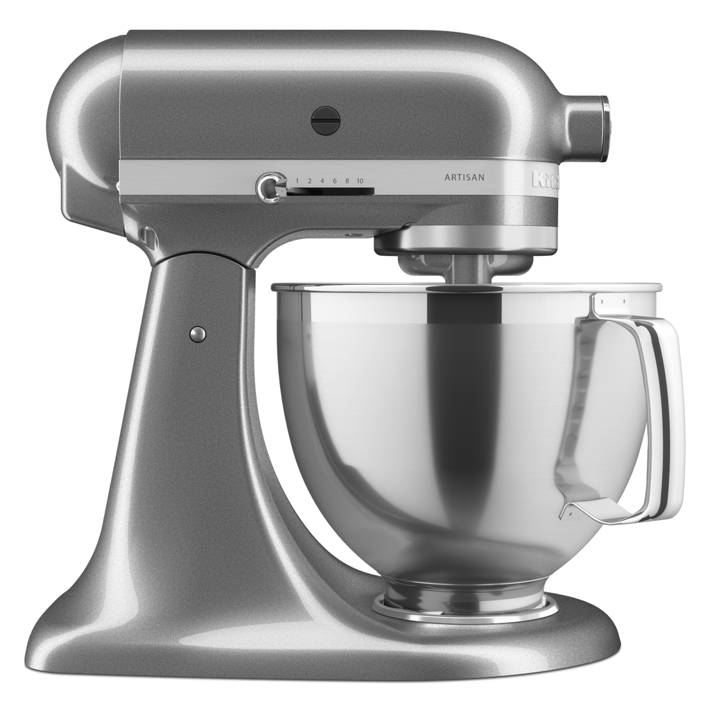 Whether you need 9 dozen of your signature chocolate chips cookies* or several pounds of shredded chicken for Taco Tuesday, the KitchenAid® Artisan® Series Tilt-Head Stand Mixer with Premium Accessory Pack has the capacity and tools for every occasion. This model includes both a 3 and 5 quart bowl, so you can do more - mix up batter in one and then whip up a silky frosting in the other. In addition, the exclusive accessory pack includes a flex edge beater, pastry beater, dough hook, wire whip and redesigned secure fit pouring shield. This durable tilt-head stand mixer was built to take it all on, and features 10 speeds to gently knead, thoroughly mix andwhip ingredients for a wide variety of recipes. *Using the flat beater; 28g dough each. Medallion Silver.