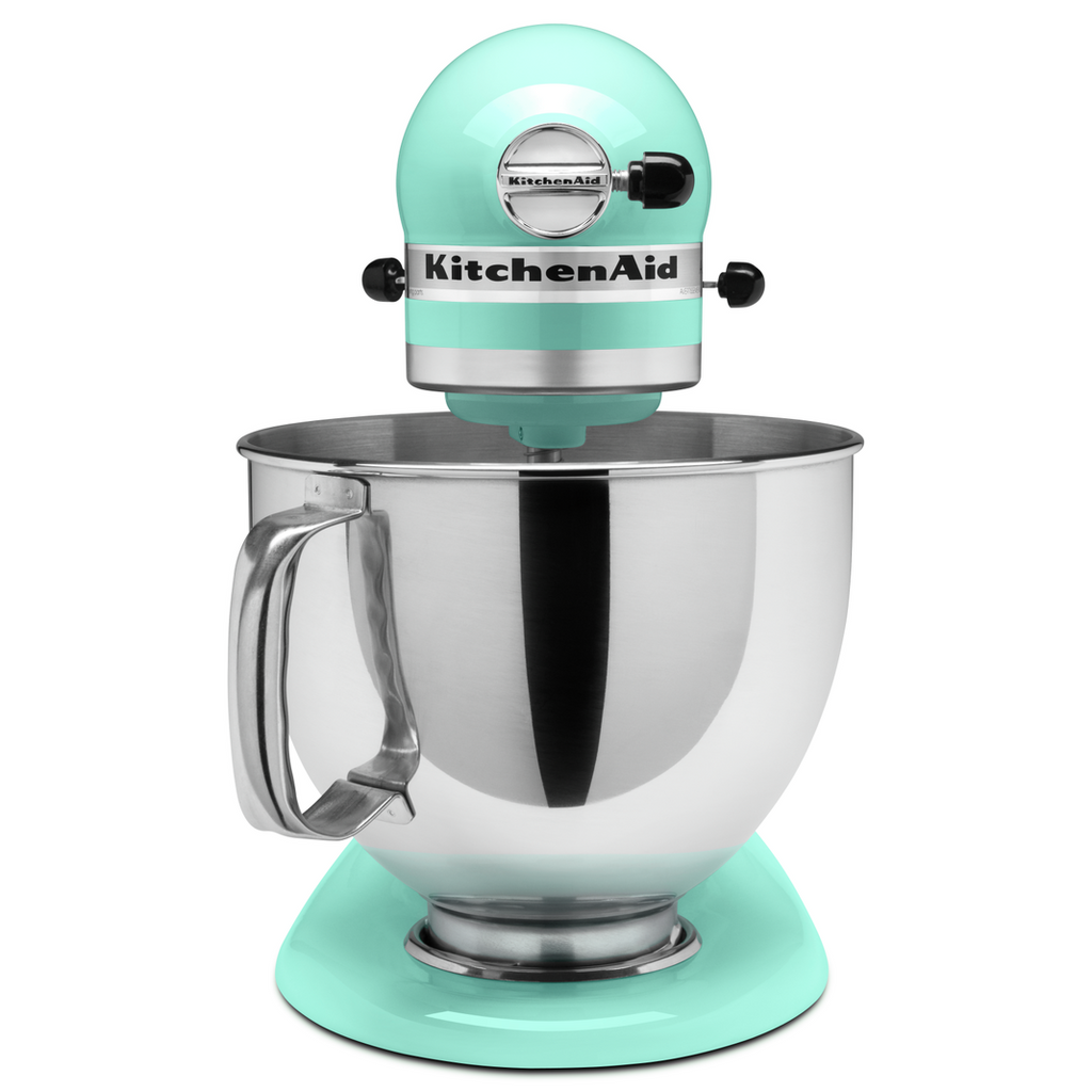 ARTISAN® SERIES 5-QUART TILT-HEAD STAND MIXER Whether you need 9 dozen* of your signature chocolate chips cookies or shredded chicken for Taco Tuesday with friends and family, the KitchenAid® Artisan® Series 5 Quart Tilt-Head Stand Mixer has the capacity for every occasion. This durable tilt-head stand mixer was built to last, and features 10 speeds to gently knead, thoroughly mix and whip ingredients for a wide variety of recipes and comes in over 20 colors to perfectly match your kitchen design or personality. Get creative and make more with your mixer with over 10 optional hub-powered attachments**, from food grinders to pasta makers and more. *Using the flat beater; 28g dough each **sold separately. Colour: Ice