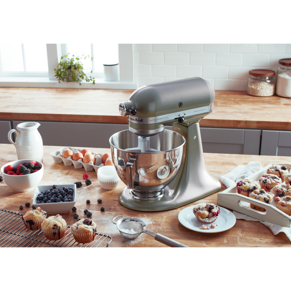 The KitchenAid Ultra Power Plus Series Tilt-Head Stand Mixer with 4.5-quart polished stainless steel mixing bowl and comfortable handle features 10 speeds to easily mix, knead and whip your favorite ingredients. For even more versatility, the power hub is designed to use the motor?s power to operate optional attachments from food grinders to pasta makers and more.