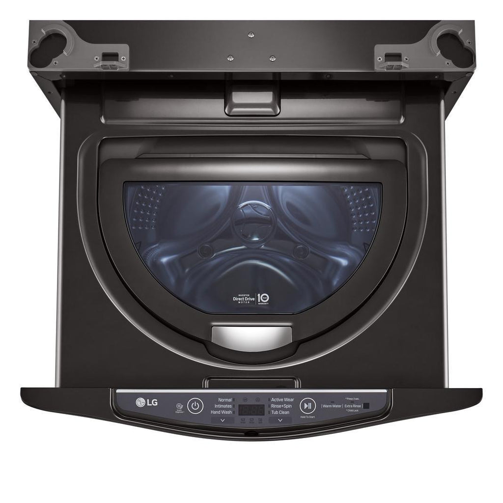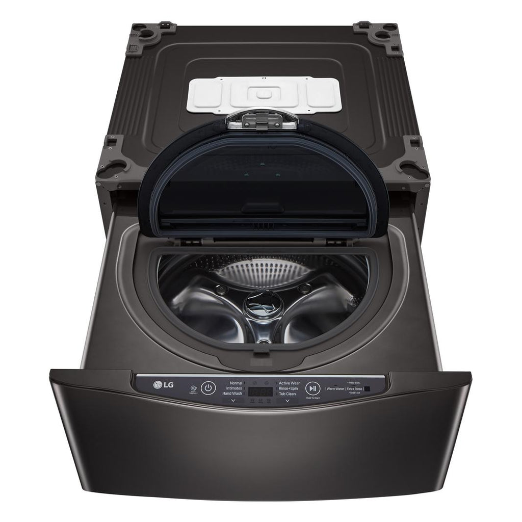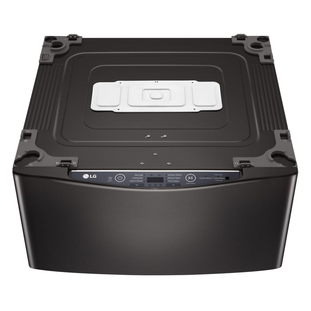 A 1.1 ft washing machine that fits in a pedestal compatible with various LG front load models.