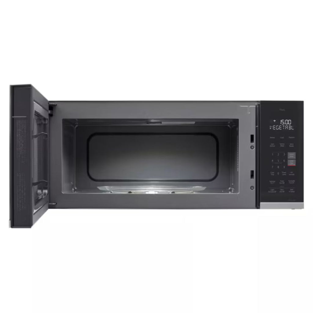 Scan-to-cook feature takes the guesswork out of frozen food meal prep-simply scan the barcode of a ready-made meal with the ThinQ® app to remotely send customized cooking instructions straight to your microwave.