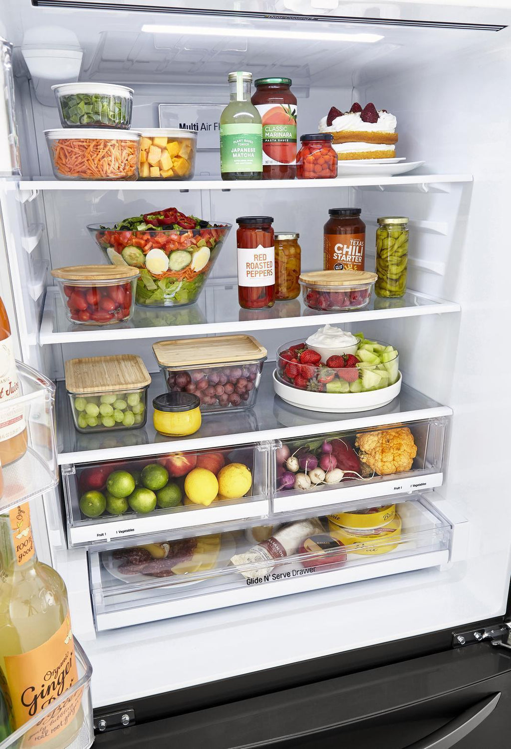 Fast Cooling for Stored Door Items. Air vents located at the front of the fridge direct cool air onto food items stored in the door area.