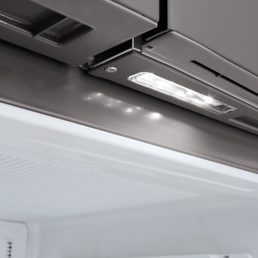 Sleek tinted glass panel illuminates with two quick knocks, so you can see inside the easy access compartment without opening the door.