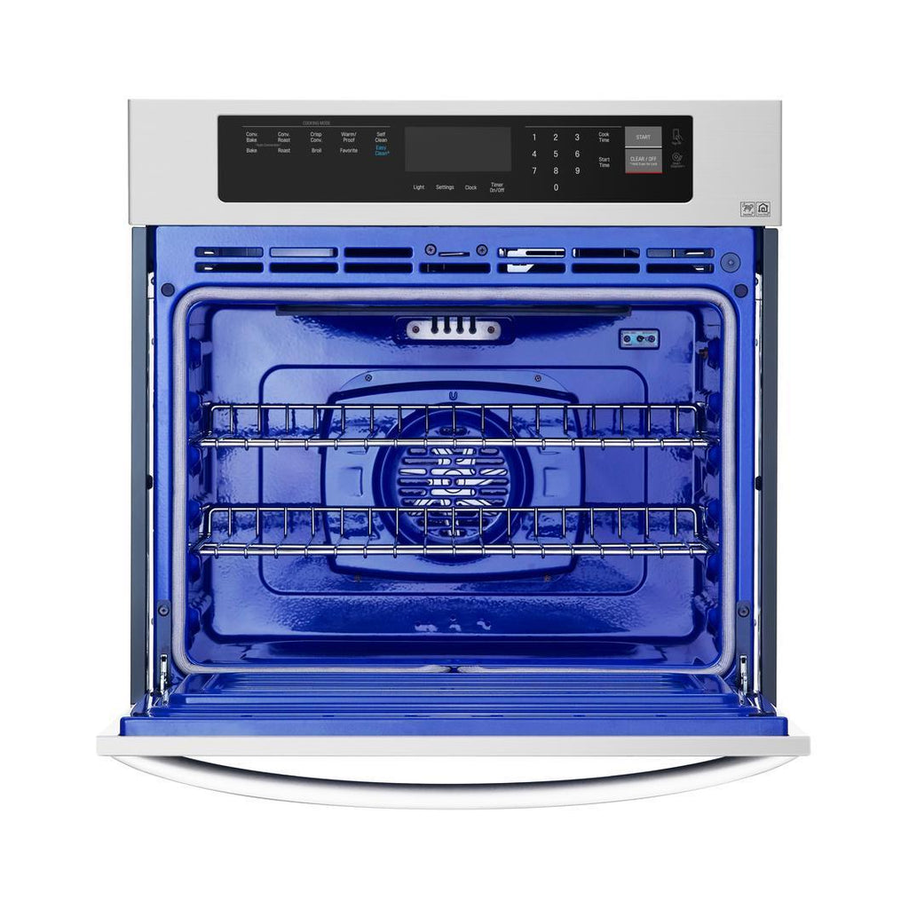 Large 4.7 cubic capacity with a premium blue interior elegantly accentuates the vivid convection glow. The recessed broiler element, hidden bake element and 3 interior lights take cooking to the next level.
