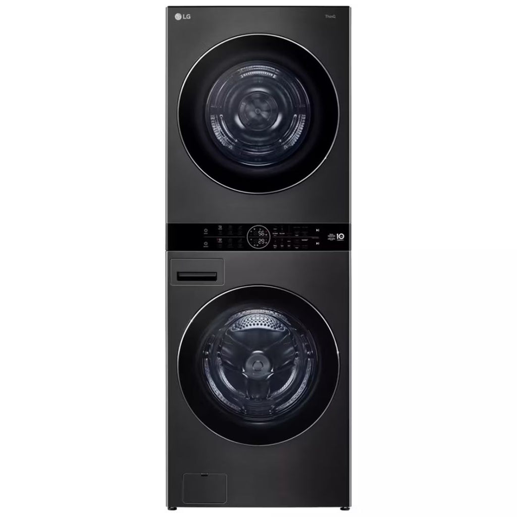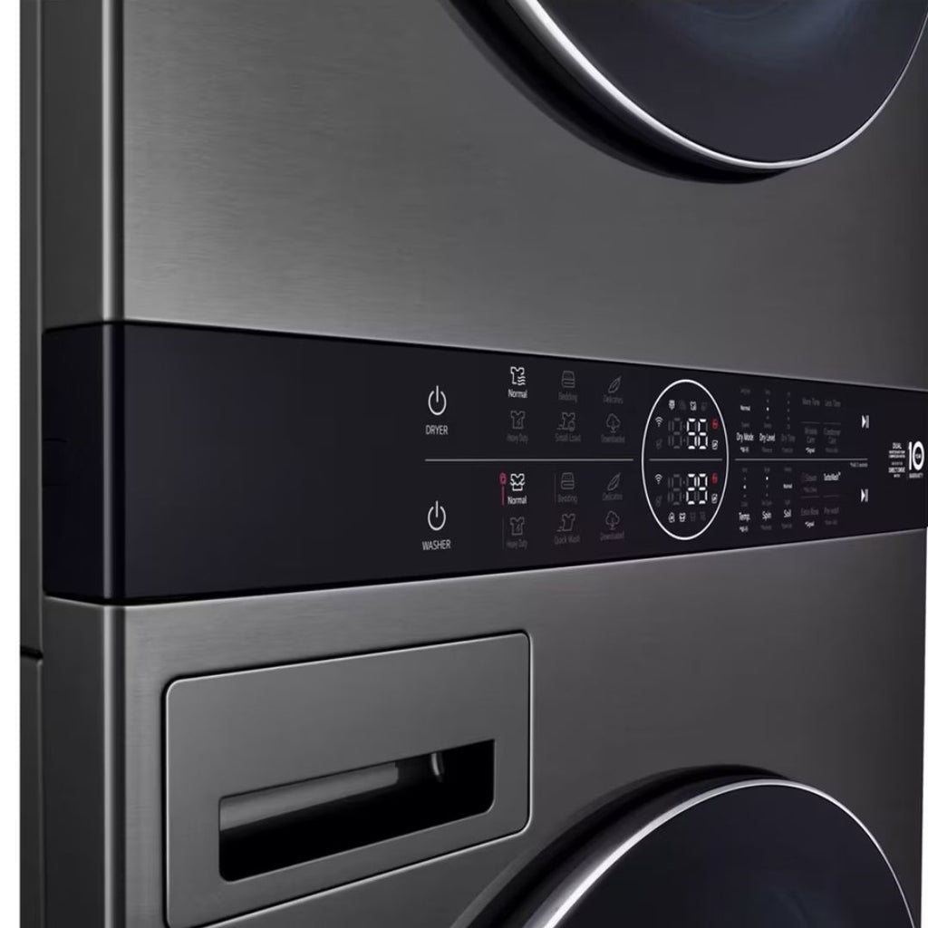 The sleek single unit LG WashTower has full-size 5.8.cu washer and 7.8 cu. ft dryer capacity in half the floor space. Unlike conventional stacked pairs, LG?s exclusive Centre Control panel is perfectly positioned with both washer and dryer controls at just the right height.