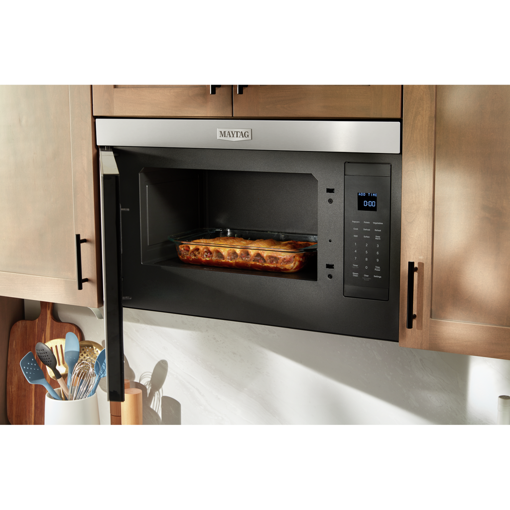 The built-in design maximizes space and helps create an open, airy kitchen. This microwave fits flush with both the front and bottom of standard depth cabinets, giving your kitchen a sleek, finished look.*When installed in standard cabinet depth 12-3/4