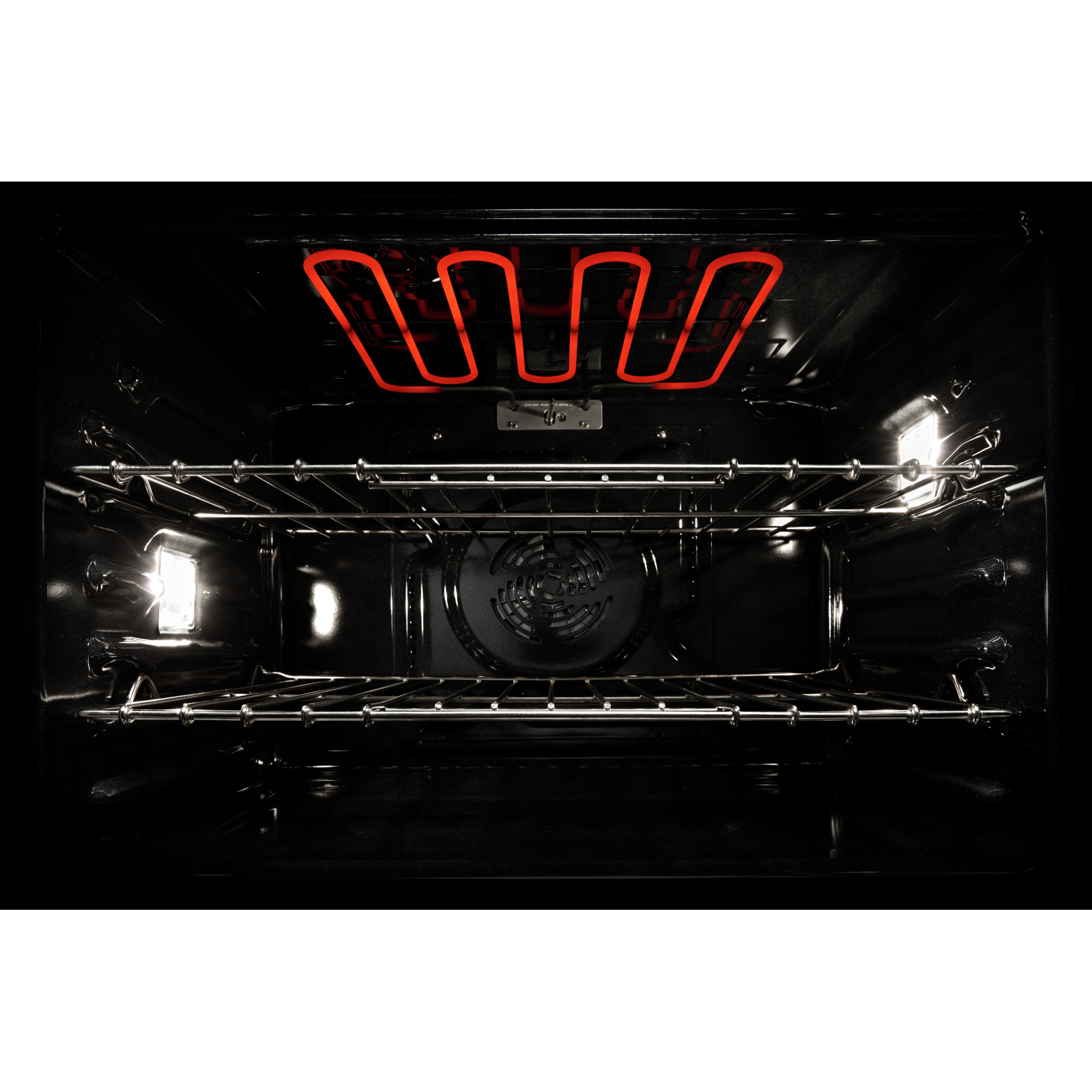 True convection uses a powerful third heating element and a sturdy fan to more evenly* circulate hot air around the oven so you can cook the whole meal at once without having to rotate your dishes for all-around baking.*Compared to two-rack traditional baking.