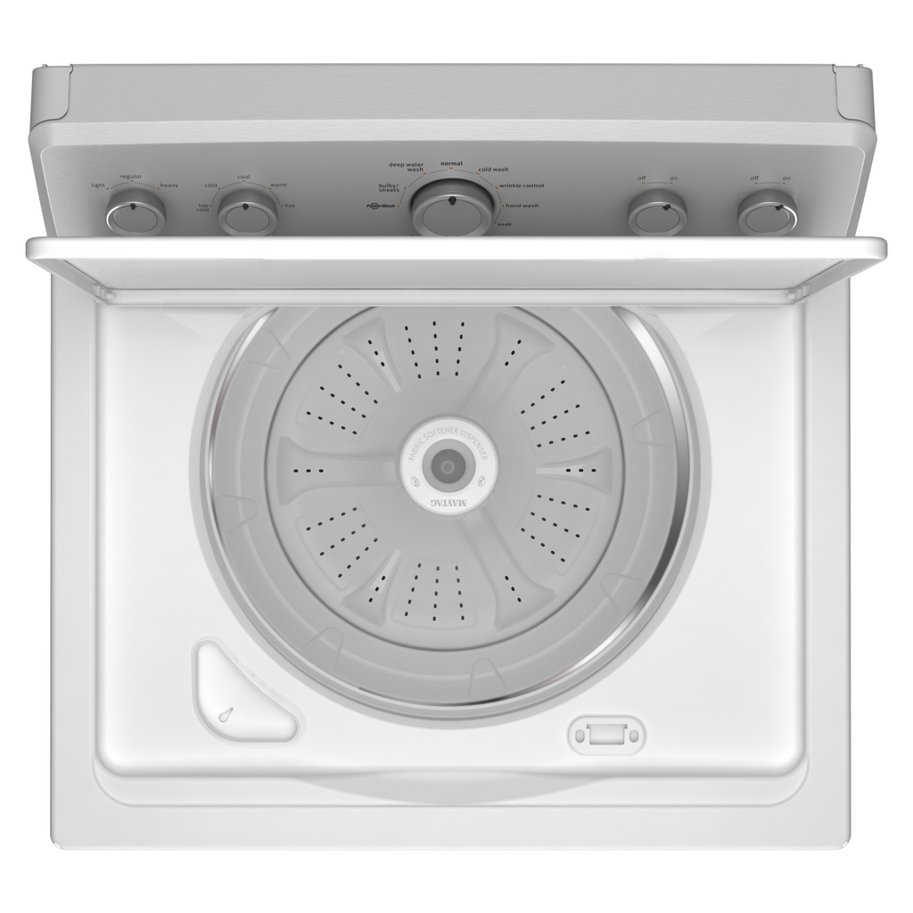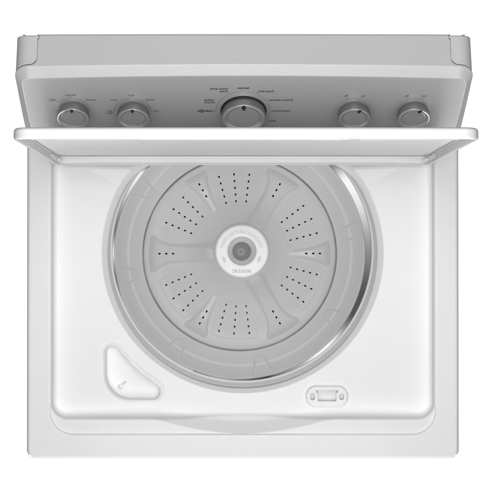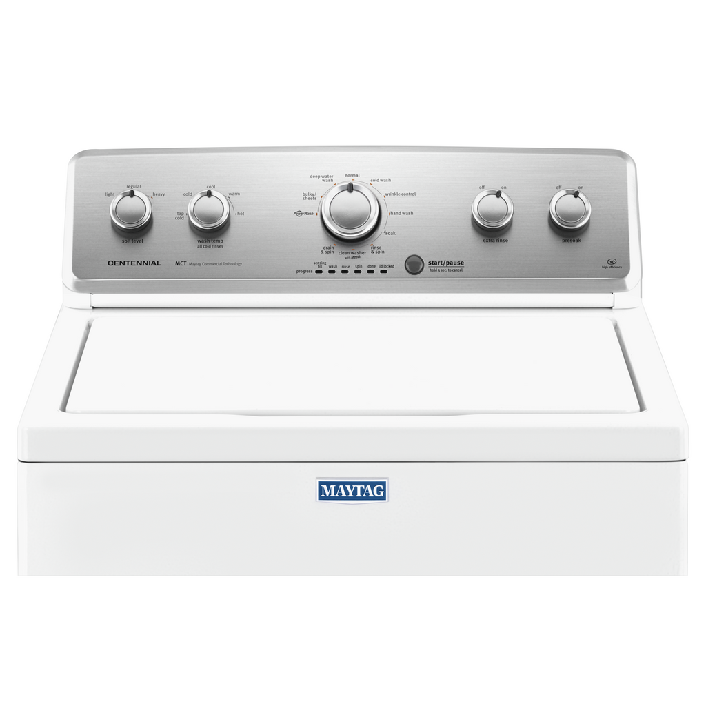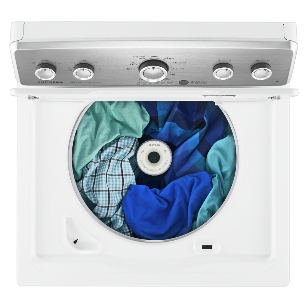 The Maytag PowerWash Agitator uses sensing technology to adjust water levels for maximum effectiveness and dispenses fabric softener at the right time during each cycle.