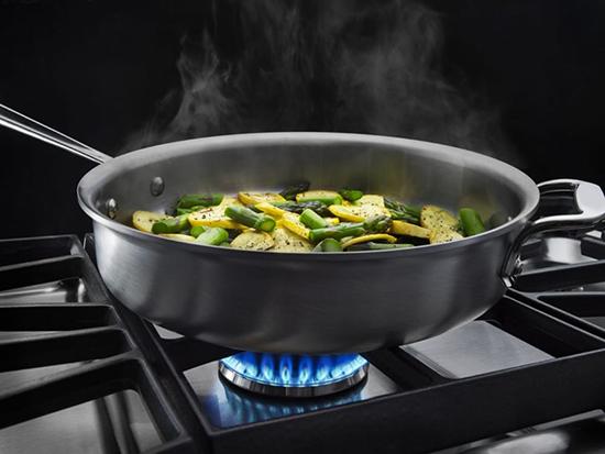 Dishwasher safe DuraClean cast-iron grates let pots and pans smoothly slide around the cooktop for fewer spills and easier transitions from burner to burner.