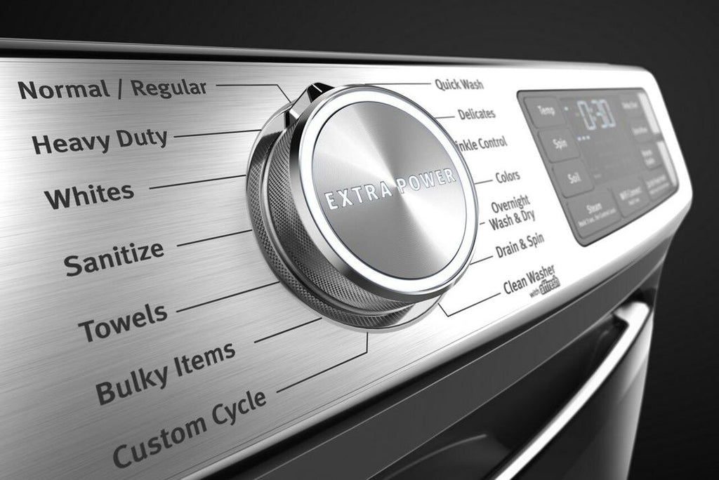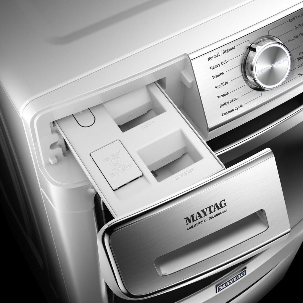 Get the heavy duty washing machine that delivers the Most Powerful Cleaning in the industry driven by the Heavy Duty cycle with Extra Power button. The Extra Power button boosts stain-fighting performance on any wash cycle with a dual-temperature wash. Monitor and control your appliance when you're away from home with smart washing machine features. And with the 24-Hr Fresh Hold option, Maytag helps keep clean clothes smelling fresh for up to 24 hours after wash cycles end.