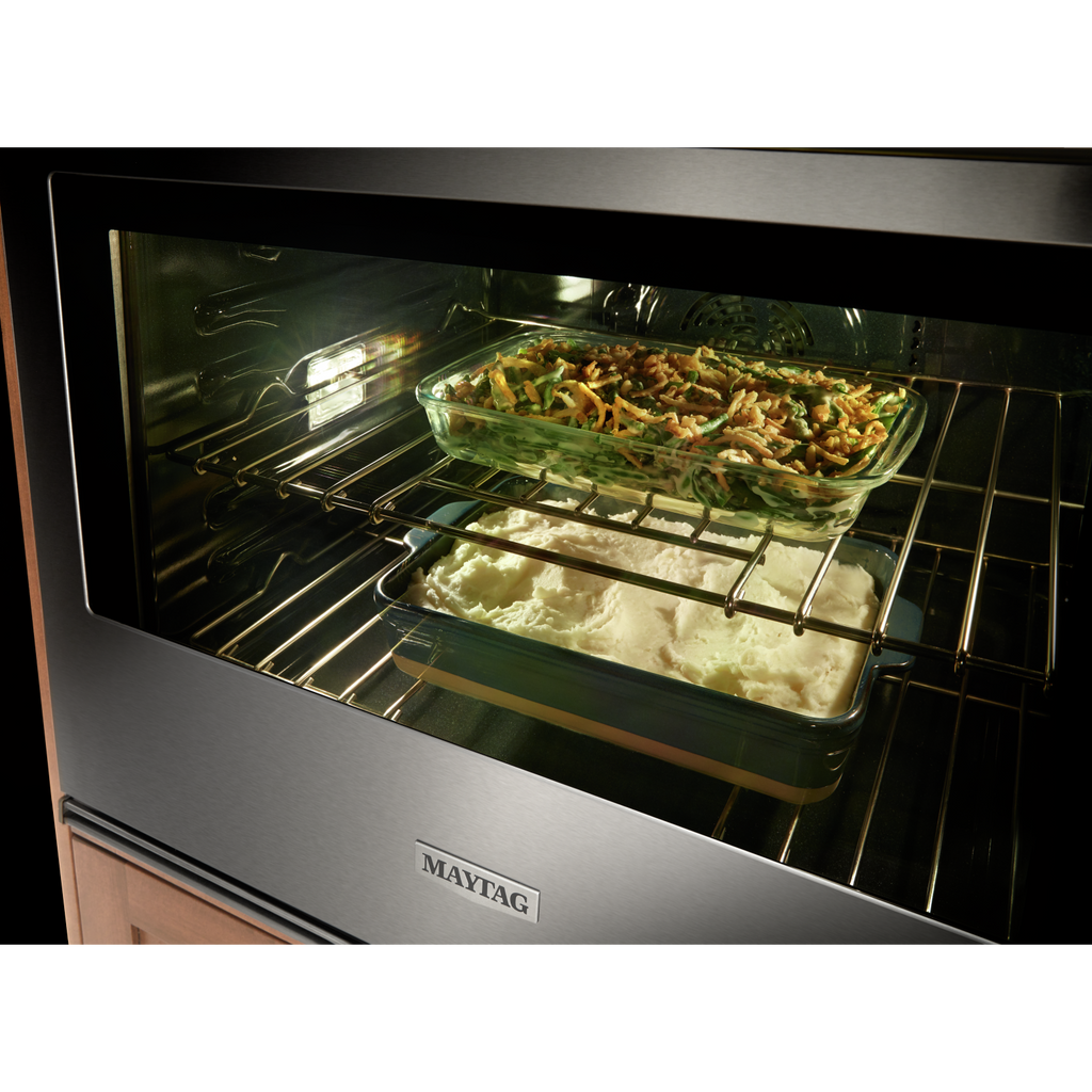 Cook what you want, when you want it in this Maytag® 27 inch double wall oven with air fryer. This wall oven air fryer combo is ready for whatever recipe you throw at it, backed by convenient features like No-Preheat Air Fry, true convection and variable broil. Get quick, crispy results with No-Preheat Air Fry, even-heat baking with true convection and the char you want with variable broil.