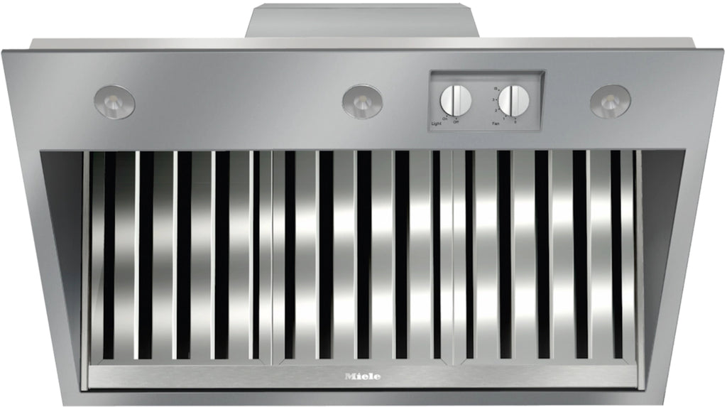Beautiful and functional: metal rotary dial controls complement the harmonious design of the range hoods.