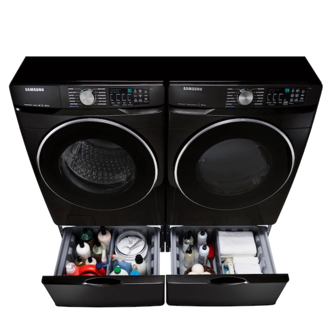 This 27-inch wide pedestal will allow you to lift your Samsung Front Load washer or dryer by more than a foot for a more convenient height. Tidy up your laundry space with an easily accessible built-in storage drawer.