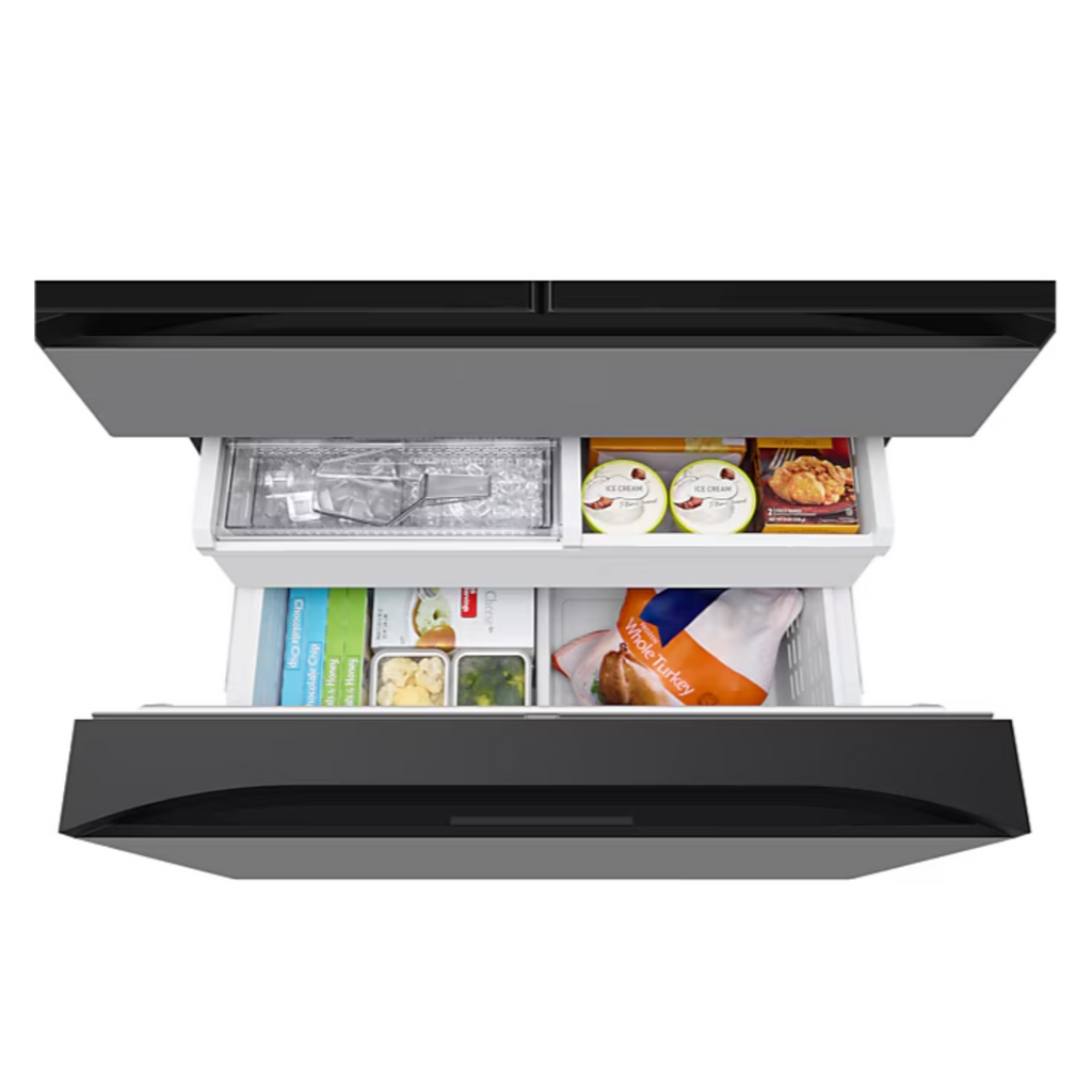 AI Vision Inside uses an internal camera to identify certain fresh food and helps you register frequently used items put in or taken out, so the food list can be automatically updated. It also allows you to view the door bins, get recipe ideas and manage the 'Use by date'.