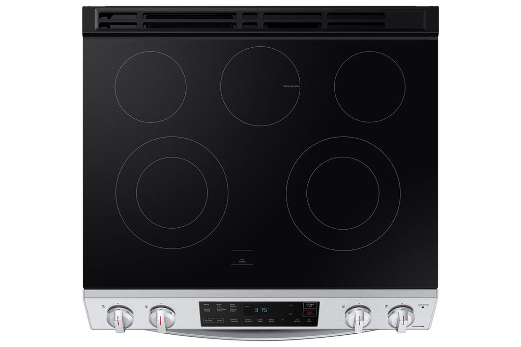 Samsung NE63T8111SS - 6 cu. Ft. Slide-In Electric Range in Stainless Steel, Fingerprint Resistant Finish, Wi-Fi Connectivity, Voice Control.