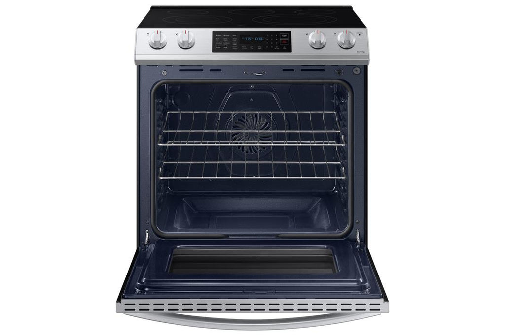 Control the oven with your voice. Using a voice assistant*, such as Samsung Bixby**, Amazon Alexa or Google Assistant, you can simply say what you want the oven to do and it will do it. You can easily turn it on/off, select functions and change settings, even if you're busy doing other things.