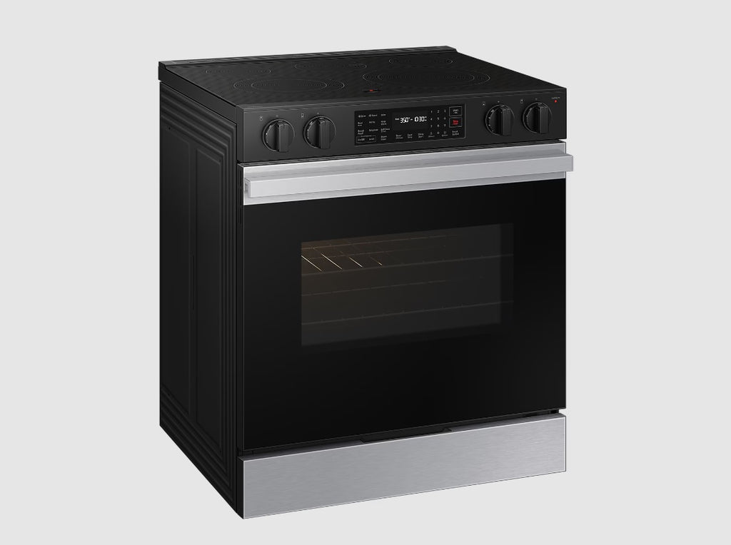 Enjoy the style and convenience of a Samsung 30-inch fan convection slide-in electric range in your kitchen. This elegant range features a recessed handle and a contemporary, bespoke design, making it a great fit for your space. And thanks to great features, like air fry and convection, you can deliver delicious meals to your family and friends, fast.