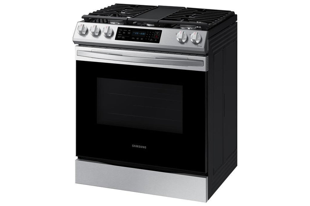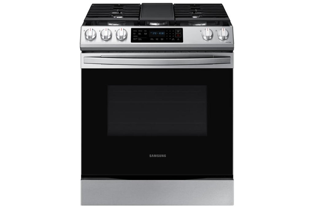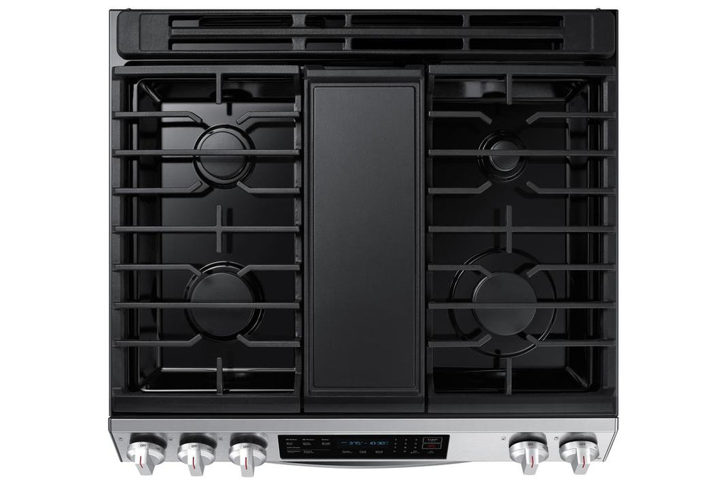 Samsung NX60T8311SS - 6 cu. Ft. Slide-In Gas Range in Stainless Steel, Fingerprint Resistant Finish, Wi-Fi Connectivity, Edge to Edge Grates.