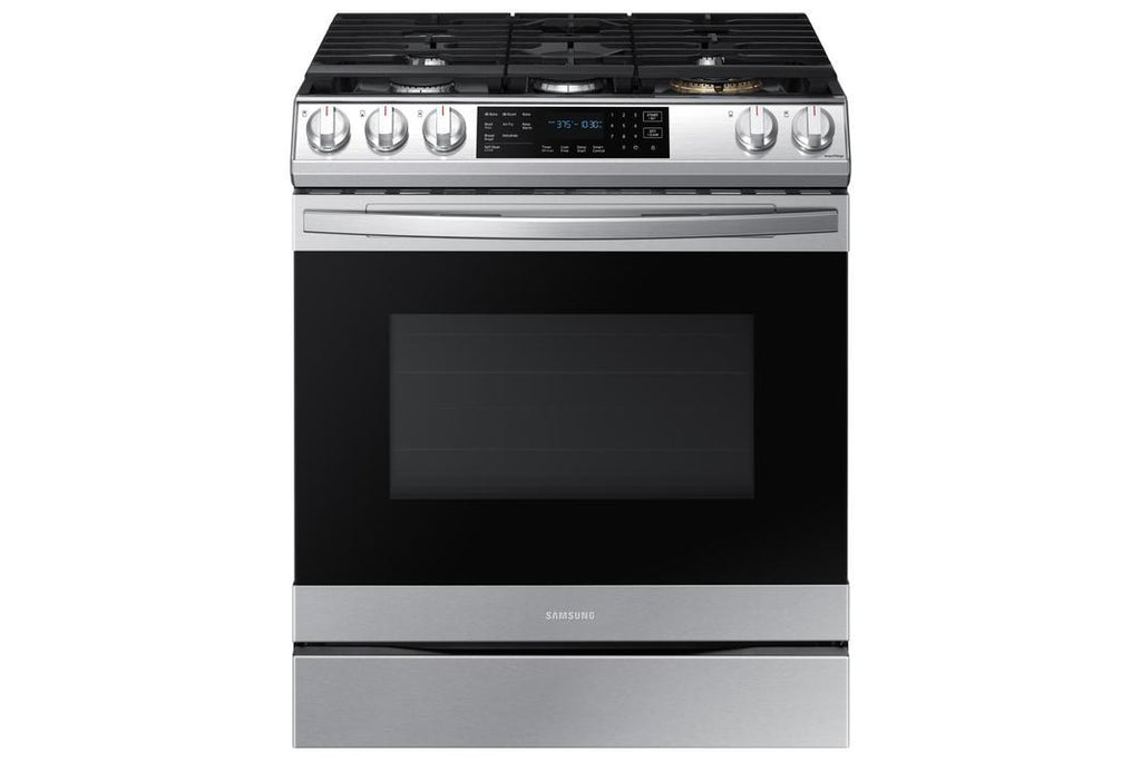 Samsung NX60T8511SS - 6 cu. Ft. Slide-In Gas Range in Stainless Steel, Convection, Fingerprint Resistant Finish, Wi-Fi Connectivity, Edge to Edge Grates.