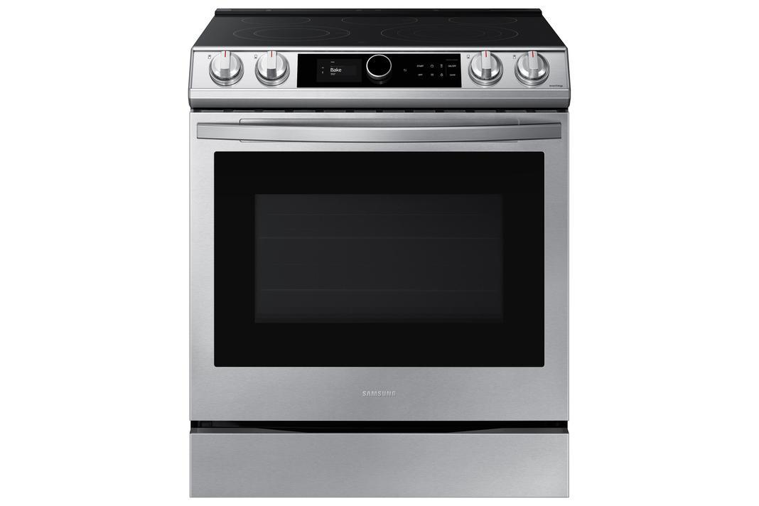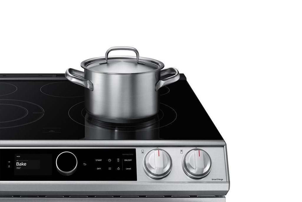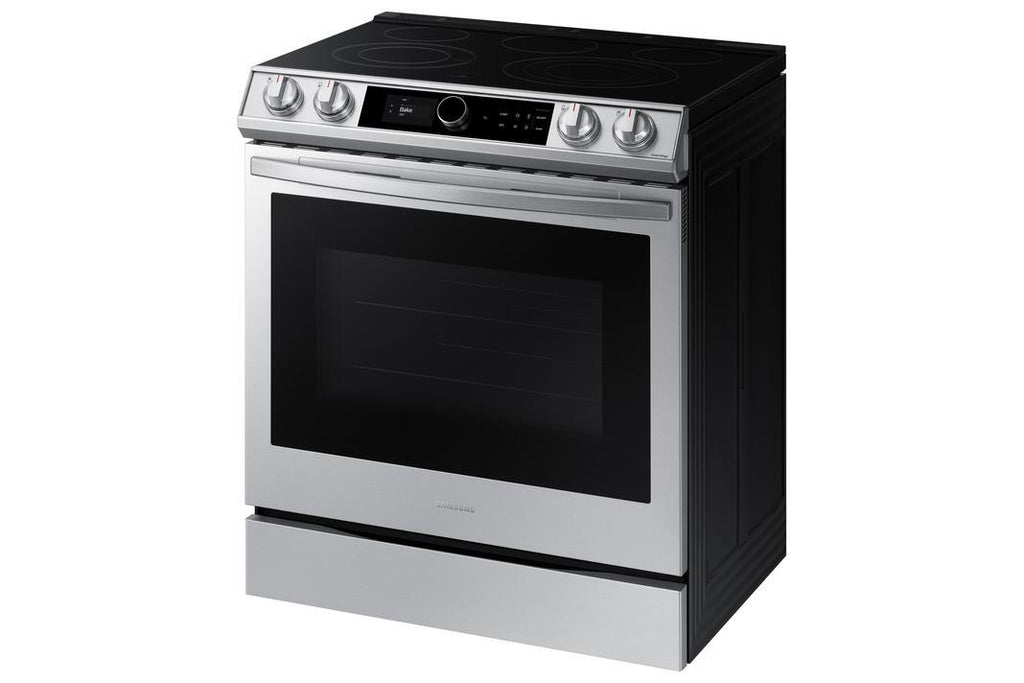 Samsung NE63T8711SS - 6 cu. Ft. Slide-In Electric Range in Stainless Steel, Convection, Air Fry, 3.6kWh Express Boil Burner, Fingerprint Resistant Finish, Wi-Fi Connectivity, Voice Control, Illuminated Knobs.