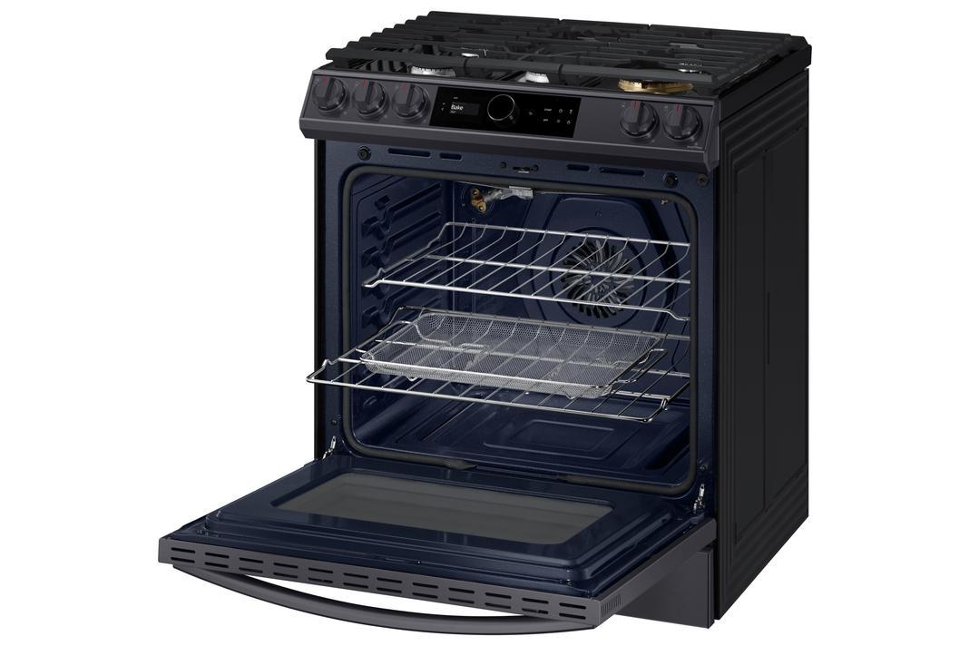 Give your kitchen a premium and stylish built-in look. The oven's slide-in design provides a modern and harmoniously integrated appearance, but is very easy to install. Simply nestle it between your existing cabinets to instantly upgrade your kitchen décor without the hassle of any major remodeling. And it makes cooking much safer and more convenient, as it has the controls at the front, so you don't have to reach across hot pans or lit burners to use them.