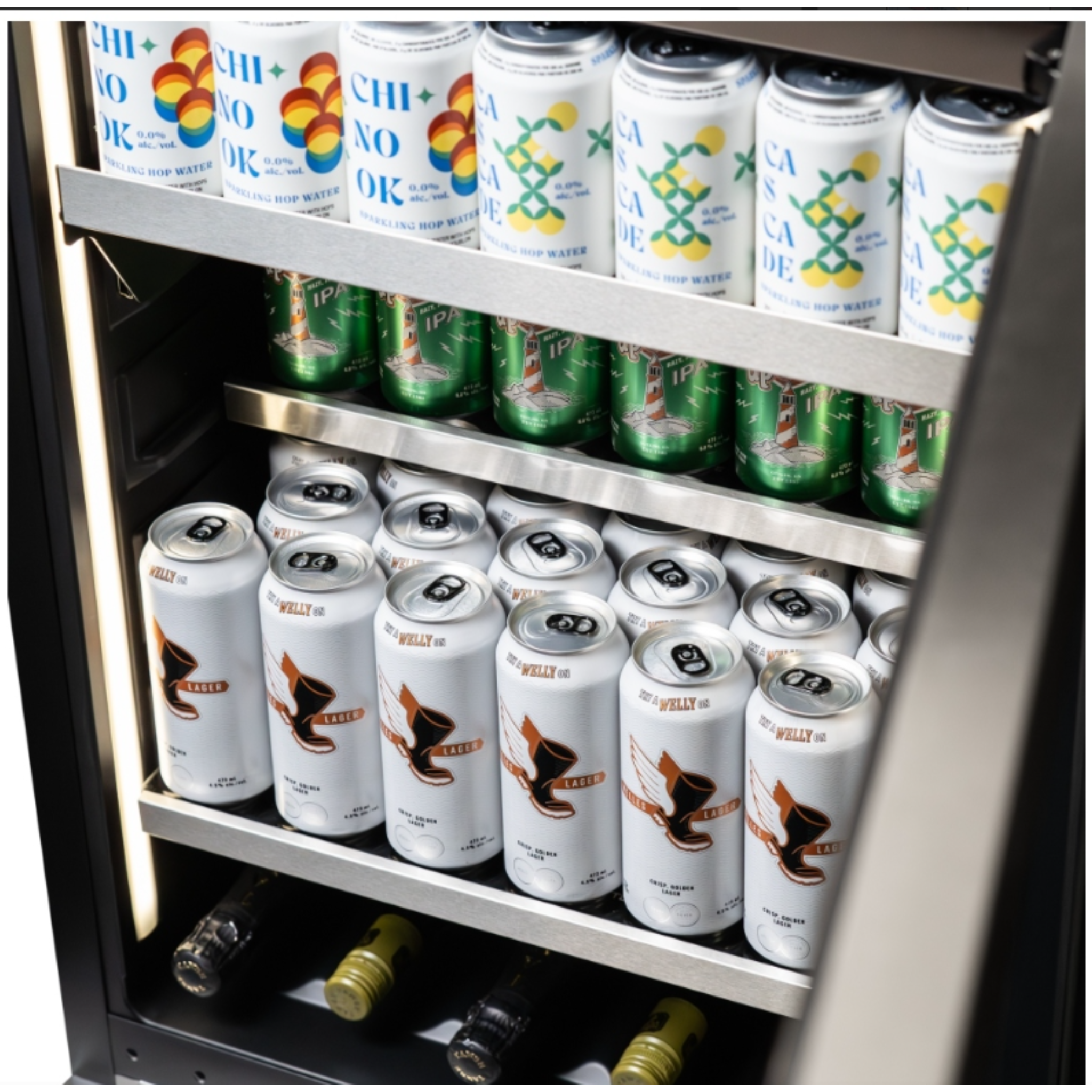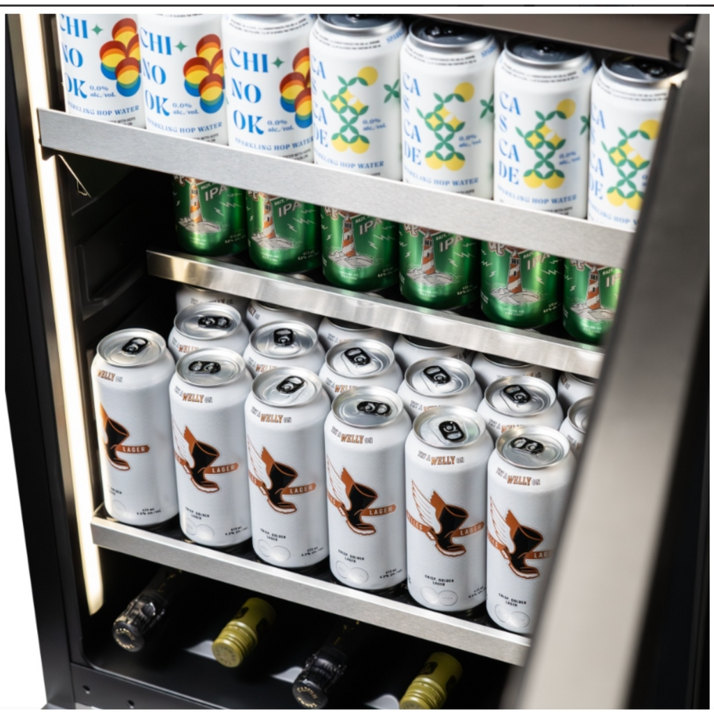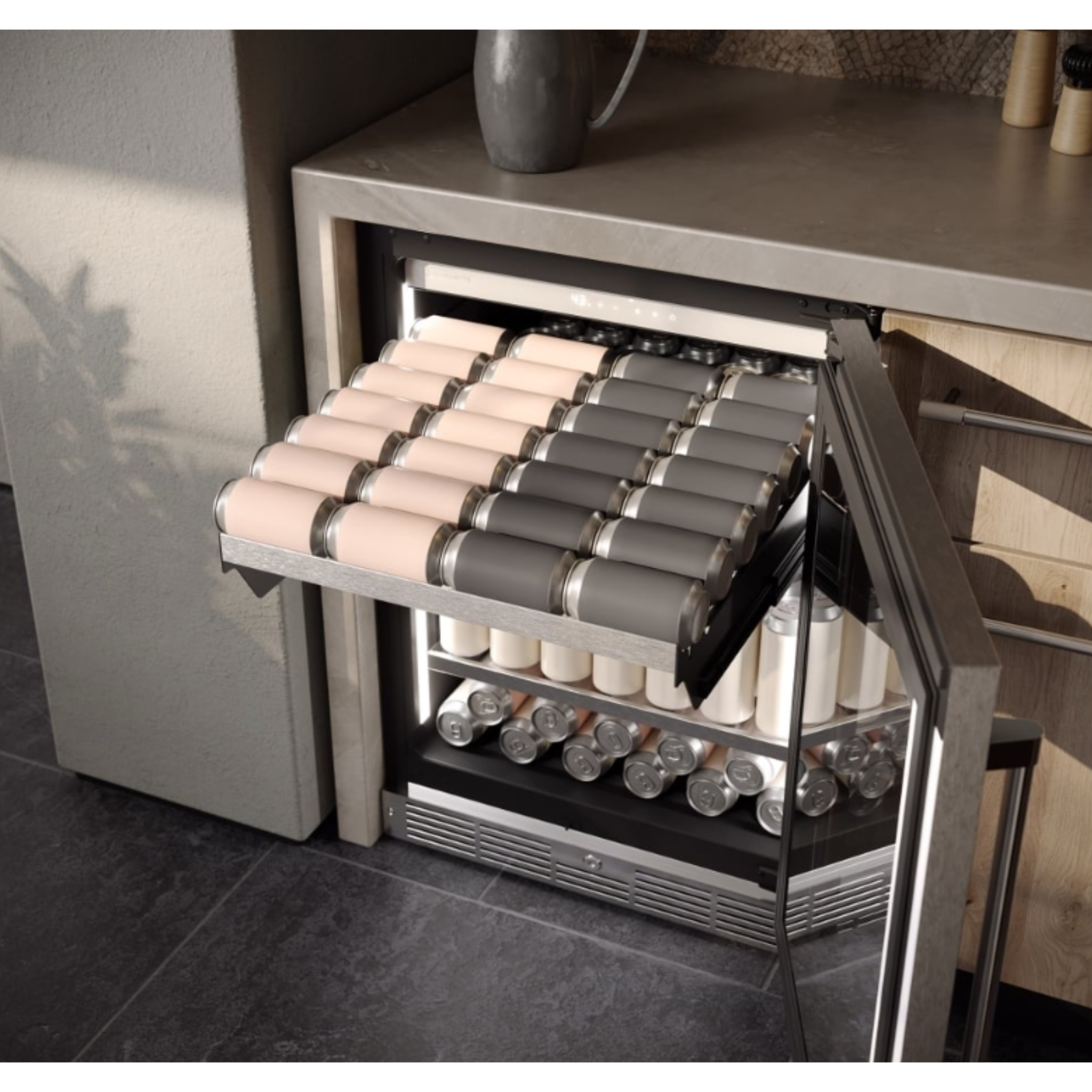 This built-in beverage center holds up to 147 cans, offering generous capacity for home bars, kitchens, or entertainment spaces without compromising style or functionality.