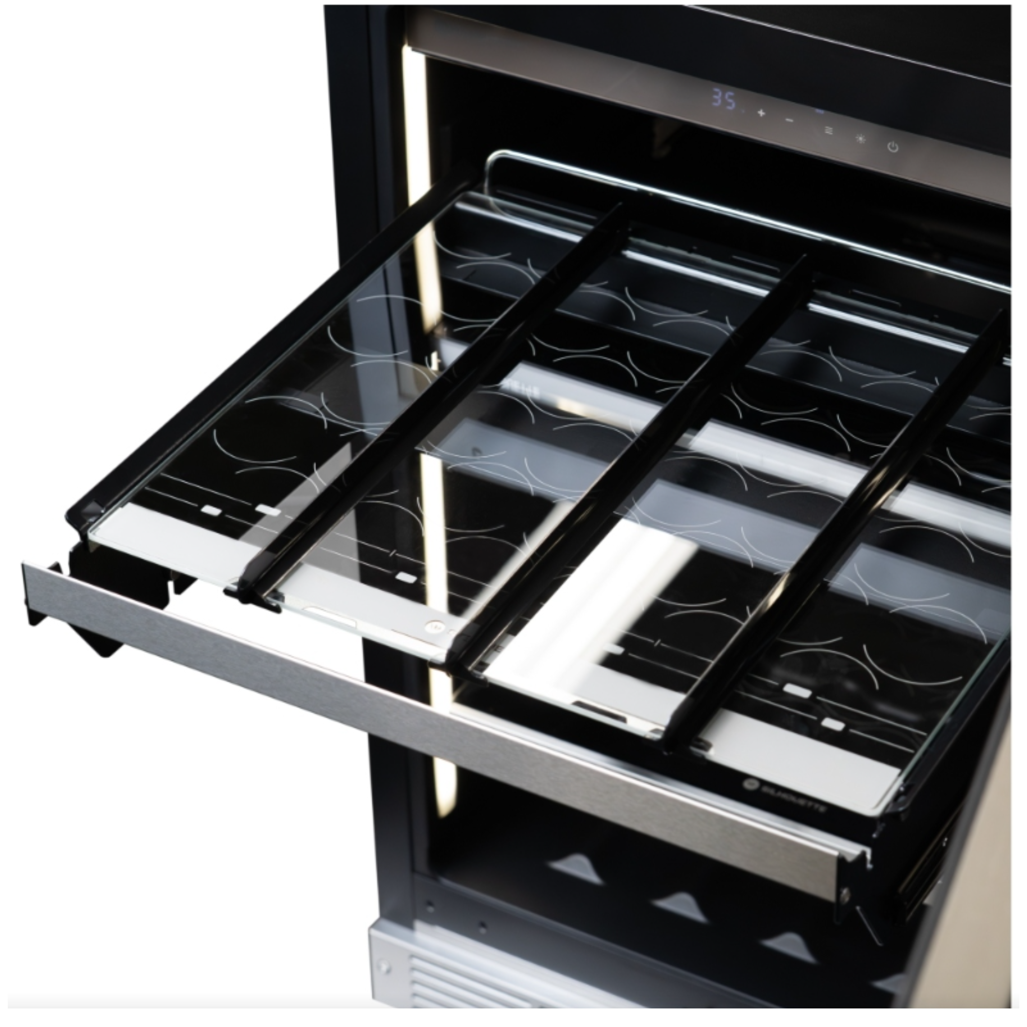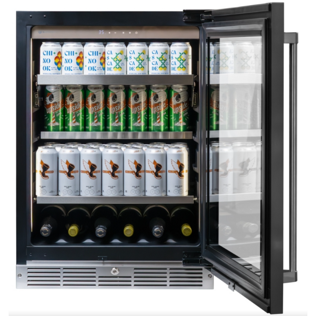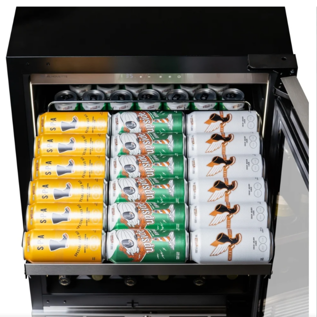 This built-in beverage center holds up to 147 cans, offering generous capacity for home bars, kitchens, or entertainment spaces without compromising style or functionality.