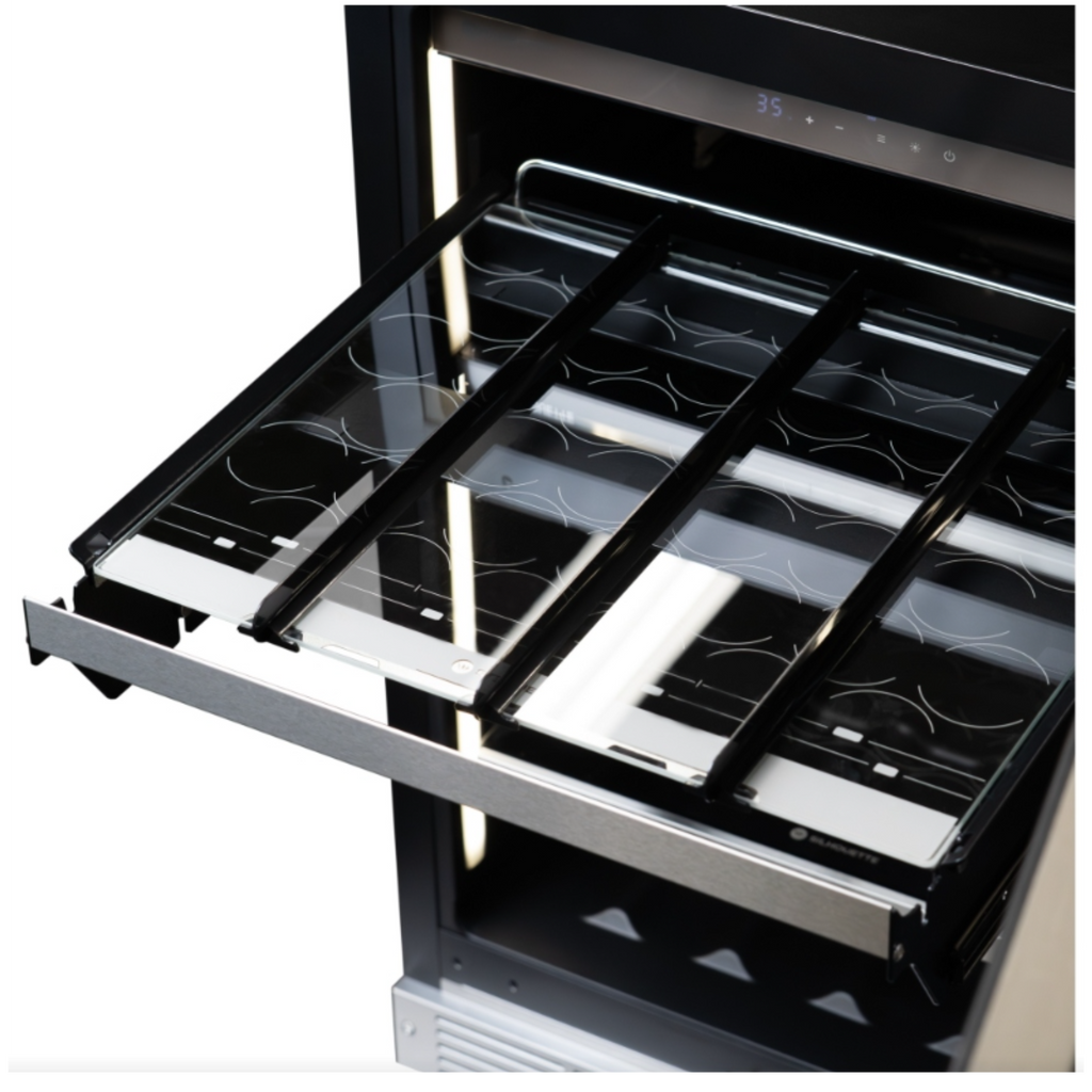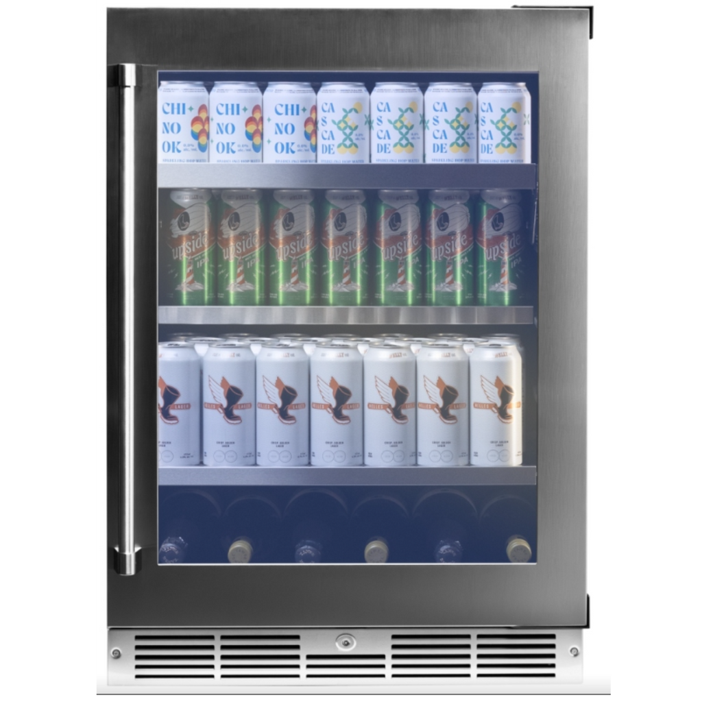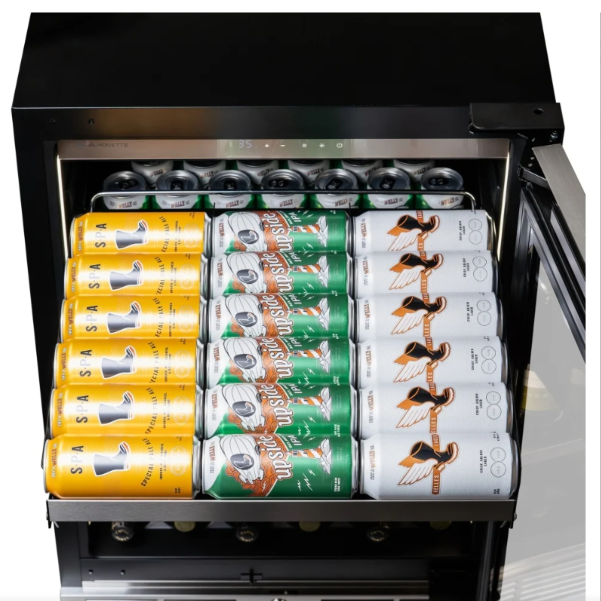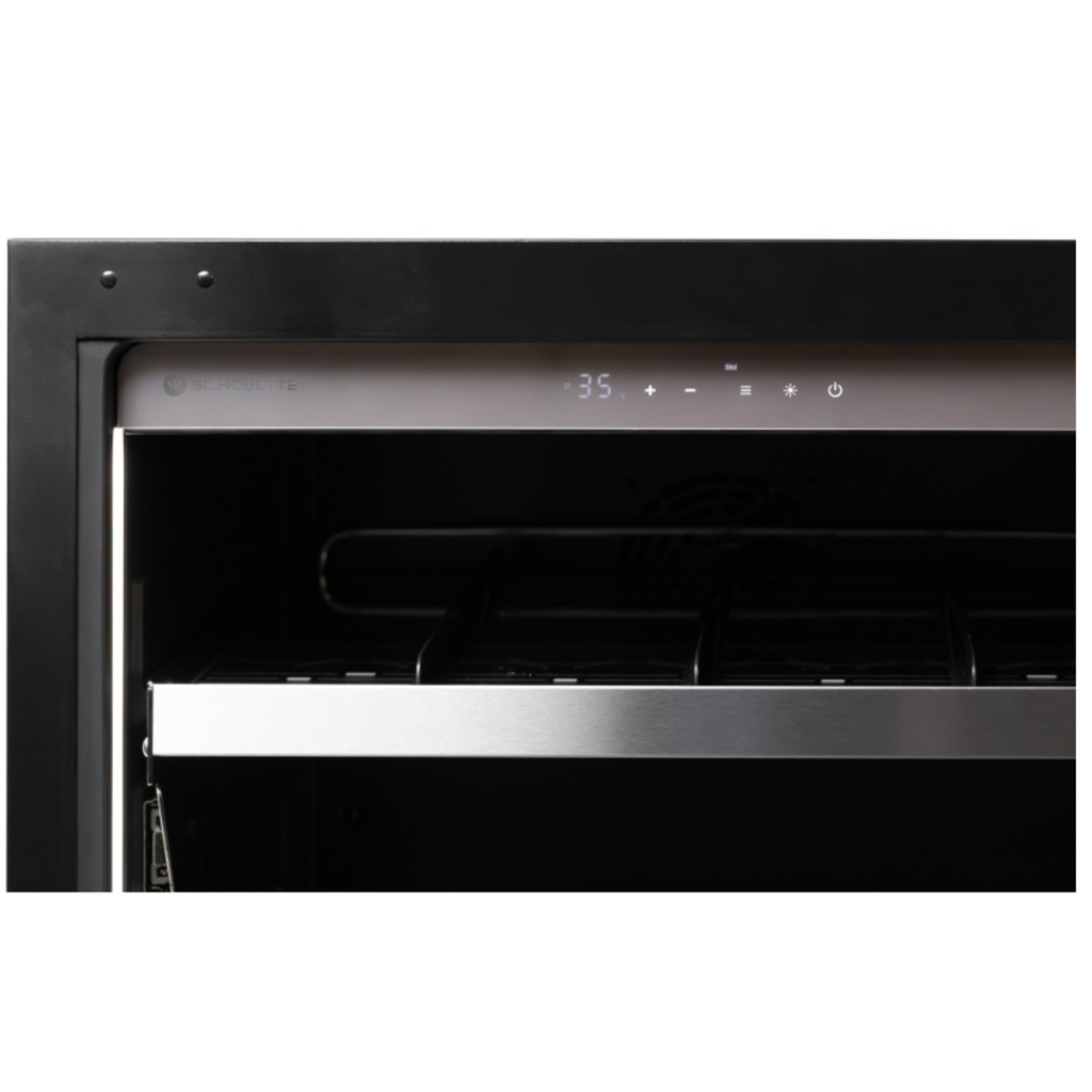 The Silhouette Pro Gen 3 SPRBC052D3SS 24" Built-in Beverage Center in Stainless Steel is the ultimate solution for beverage storage, accommodating up to 147 cans. Its single-zone temperature control ranges from 34°F to 50°F, ensuring optimal cooling. The sleek stainless steel design, including a pro-style handle and kickplate, adds a modern touch to any space. Features like full-extension runners with a patent-pending Can Dispenser mode, soft-close hinges, and a field-reversible door swing enhance convenience and accessibility. Optimized shelf spacing allows for tall can storage, while additional shelf space is perfect for upright bottles. The anti-glare LED side lighting provides excellent visibility without harsh reflections, making this beverage center both functional and stylish.