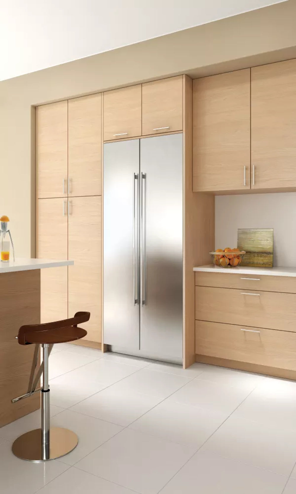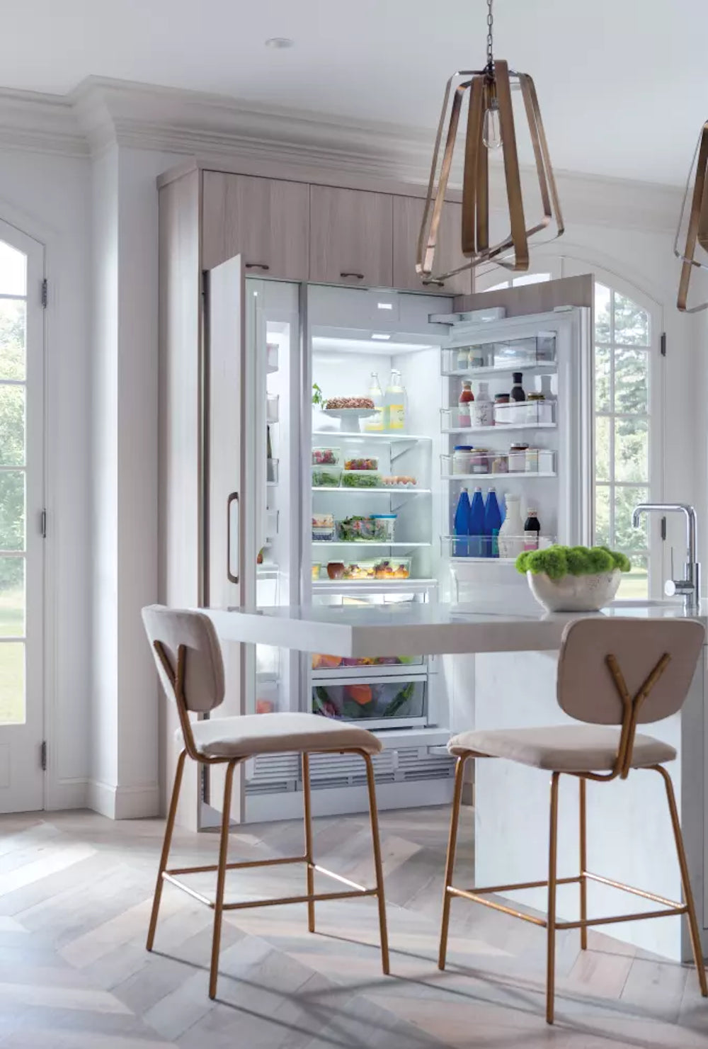 Every Sub-Zero integrated refrigerator or freezer comes ready to be fitted with custom panels and handles for seamless installation with surrounding cabinetry. The design possibilities are truly endless.