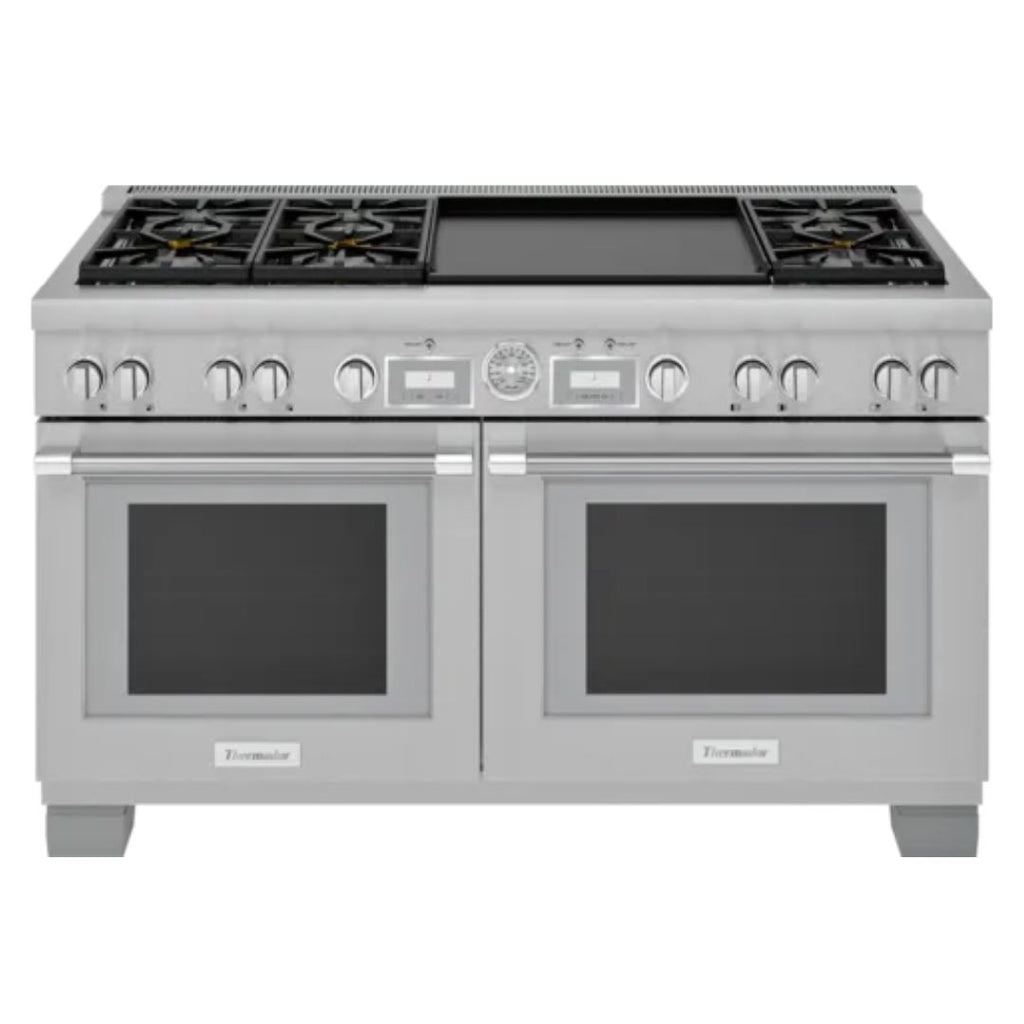 Specifications Search technical information Innovation The perfect blend of professional grade cooking with a New Bold Design with a color TFT interface with wireless connectivity Largest Pro Range Oven capacity in the industry @ 10.6 cu.ft. overall (5.7 cu.ft. main oven & 4.9 cu.ft. secondary oven) Patented Pedestal Star Burner with QuickClean Base designed for easy surface cleaning and superior heat spread for any size pan SoftClose hinges for ultra-smooth closing of both ovens. Performance 24 Inch Double Griddle with two independently controlled zones (left & right) Titanium surface non-stick, rust-proof cast-aluminum griddle, removable for easy clean-up Third Element Convection offers precise airflow for cooking on multiple levels without flavor transfer