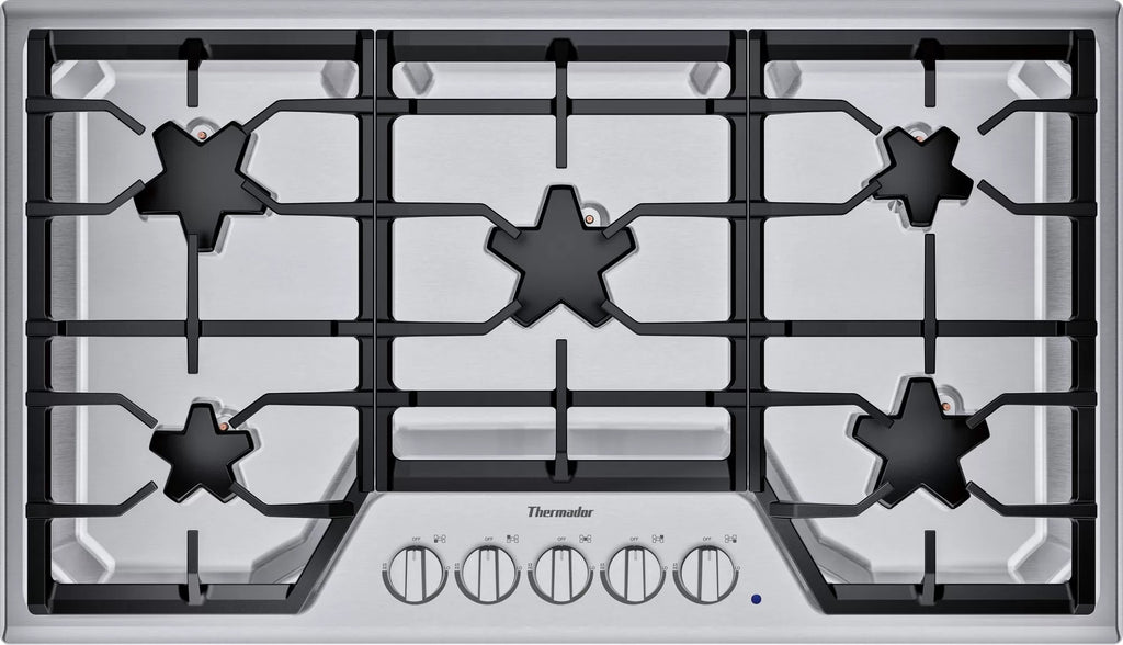 Continuous grates allow pots and pans to move effortlessly across the cooktop