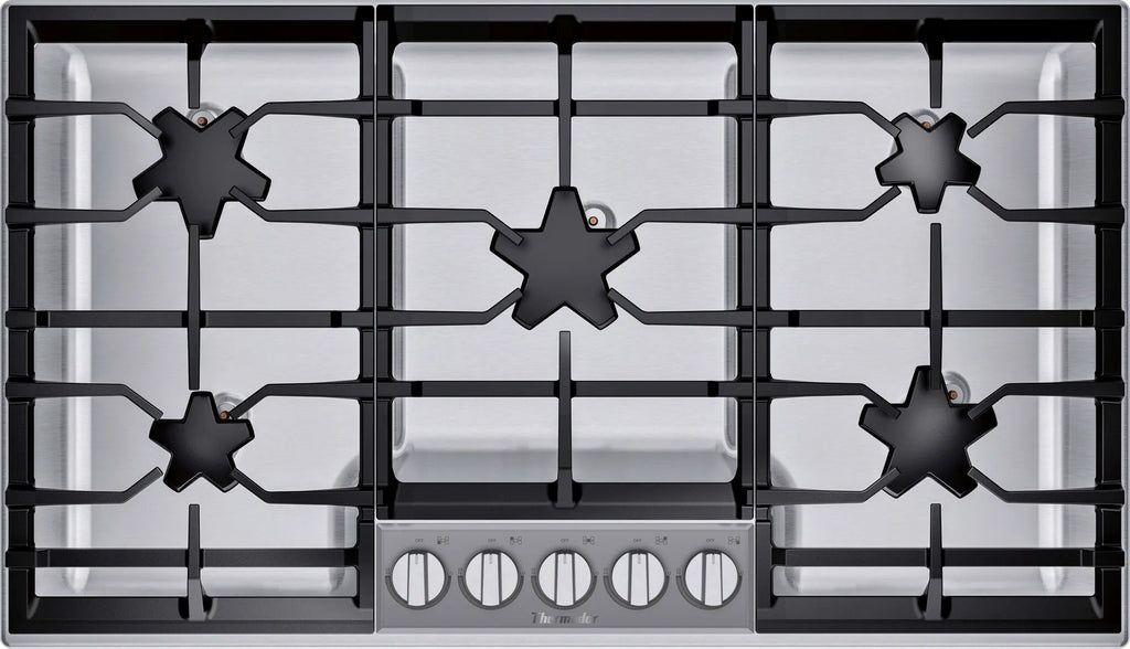 Continuous grates allow pots and pans to move effortlessly across the cooktop