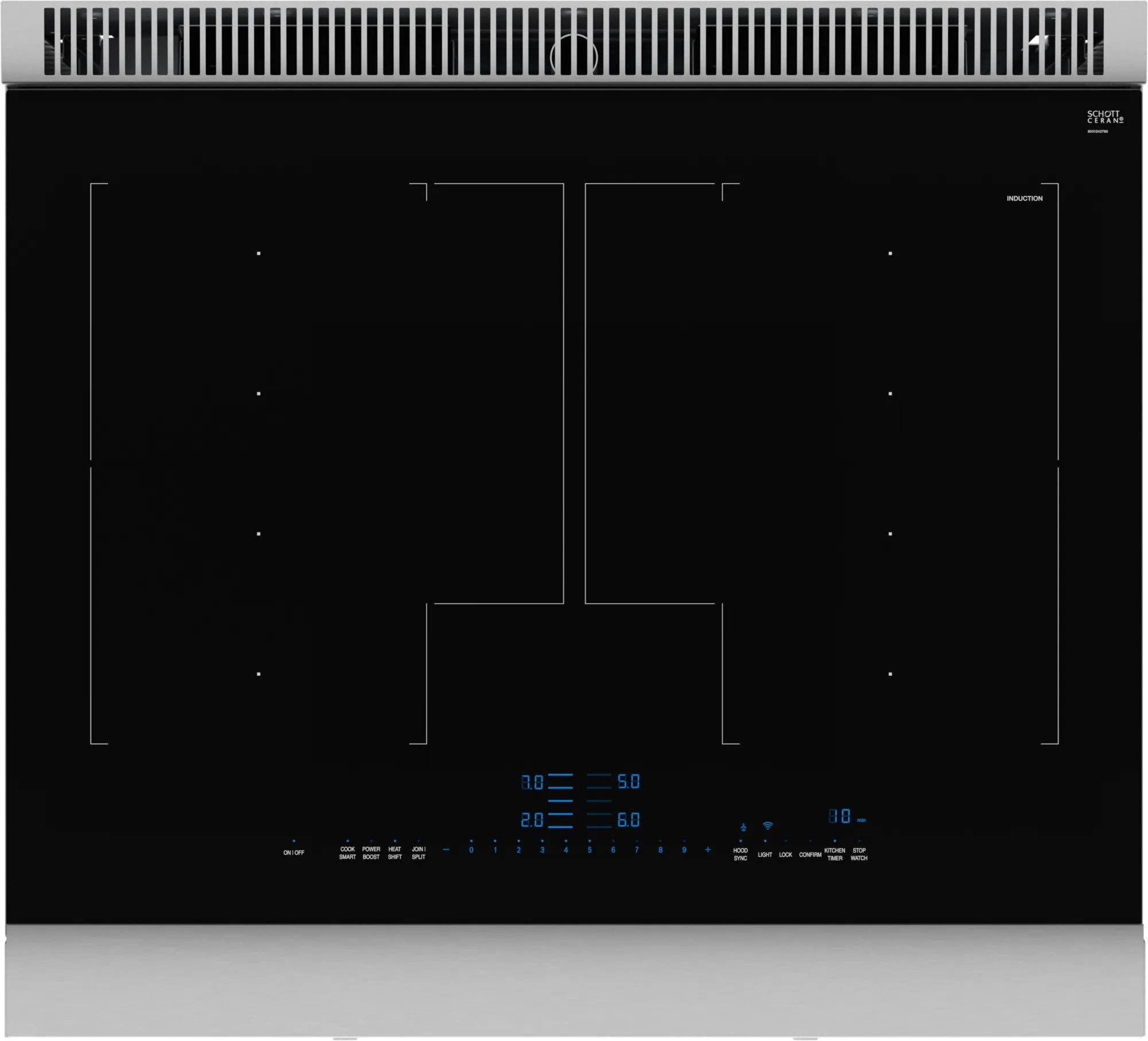 Designed for greater flexibility when cooking and a sleek smooth surface makes cleaning fast and simple. The induction cooktop has two extra-large flexible cooking zones.