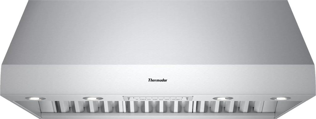 Thermador Chimney Wall Hoods may be installed above a Thermador non-professional gas, electric or induction cooktop to create a convenient cooking center.