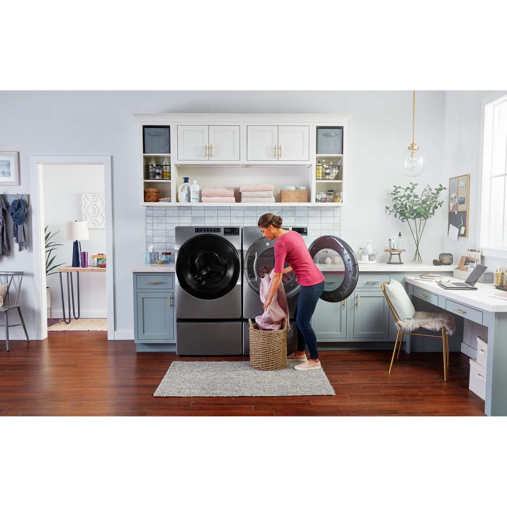 Raise your Smart All-In-One Washer & Dryer for easier loading and unloading. An optional laundry pedestal also provides space-saving storage for detergent, fabric softener and other supplies.