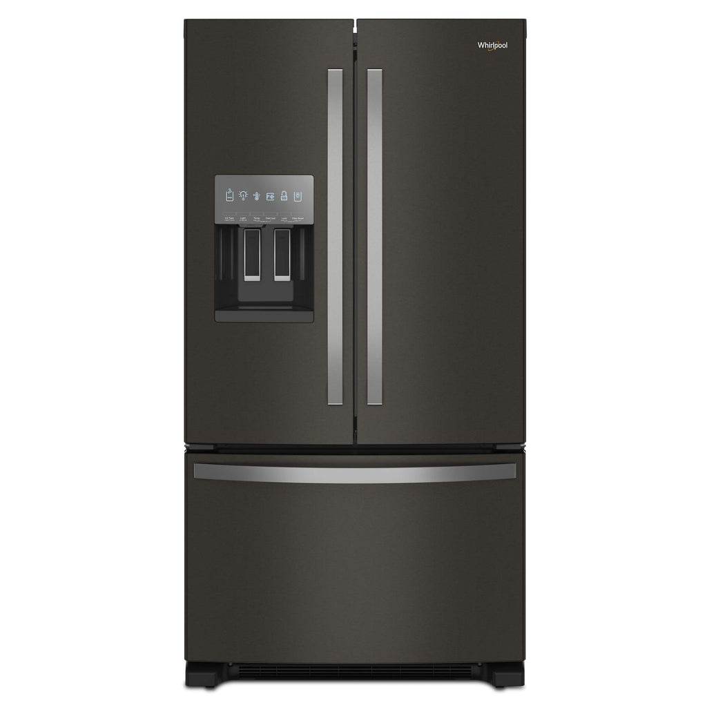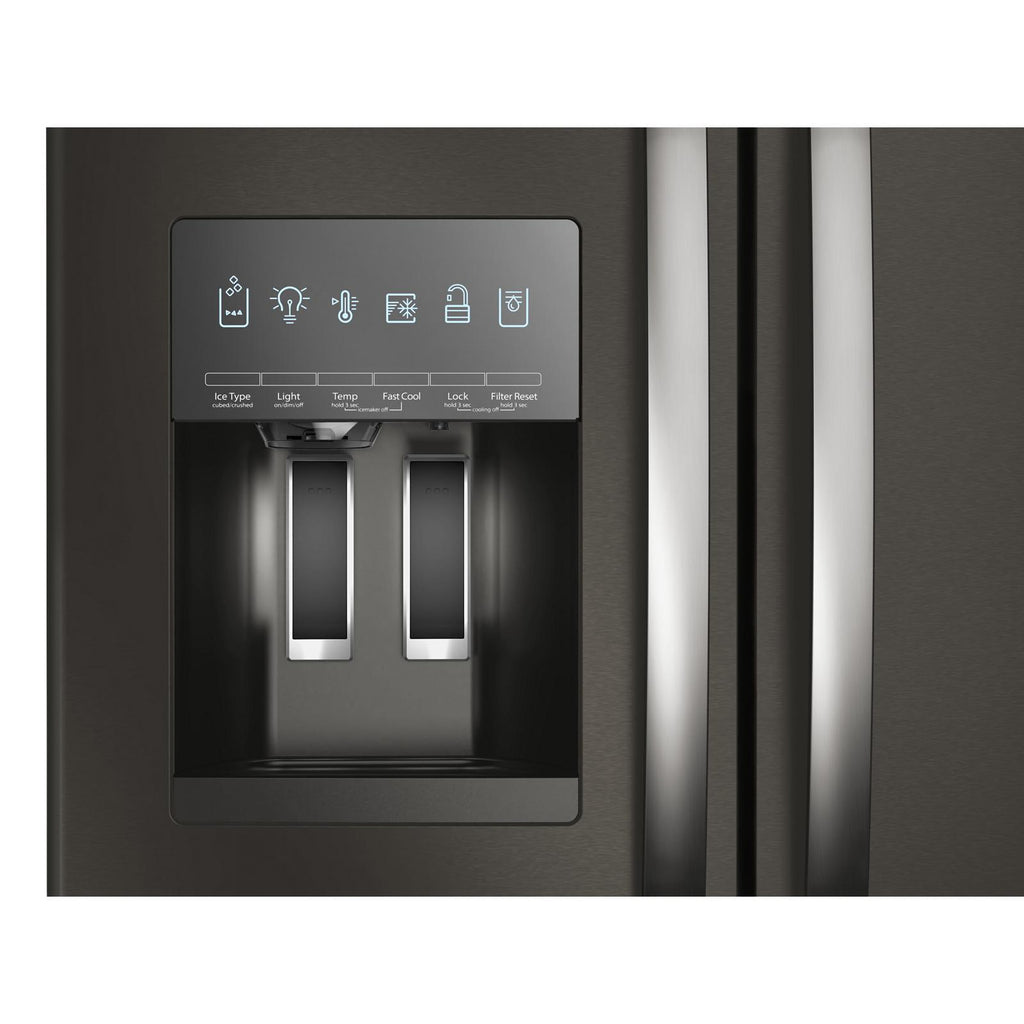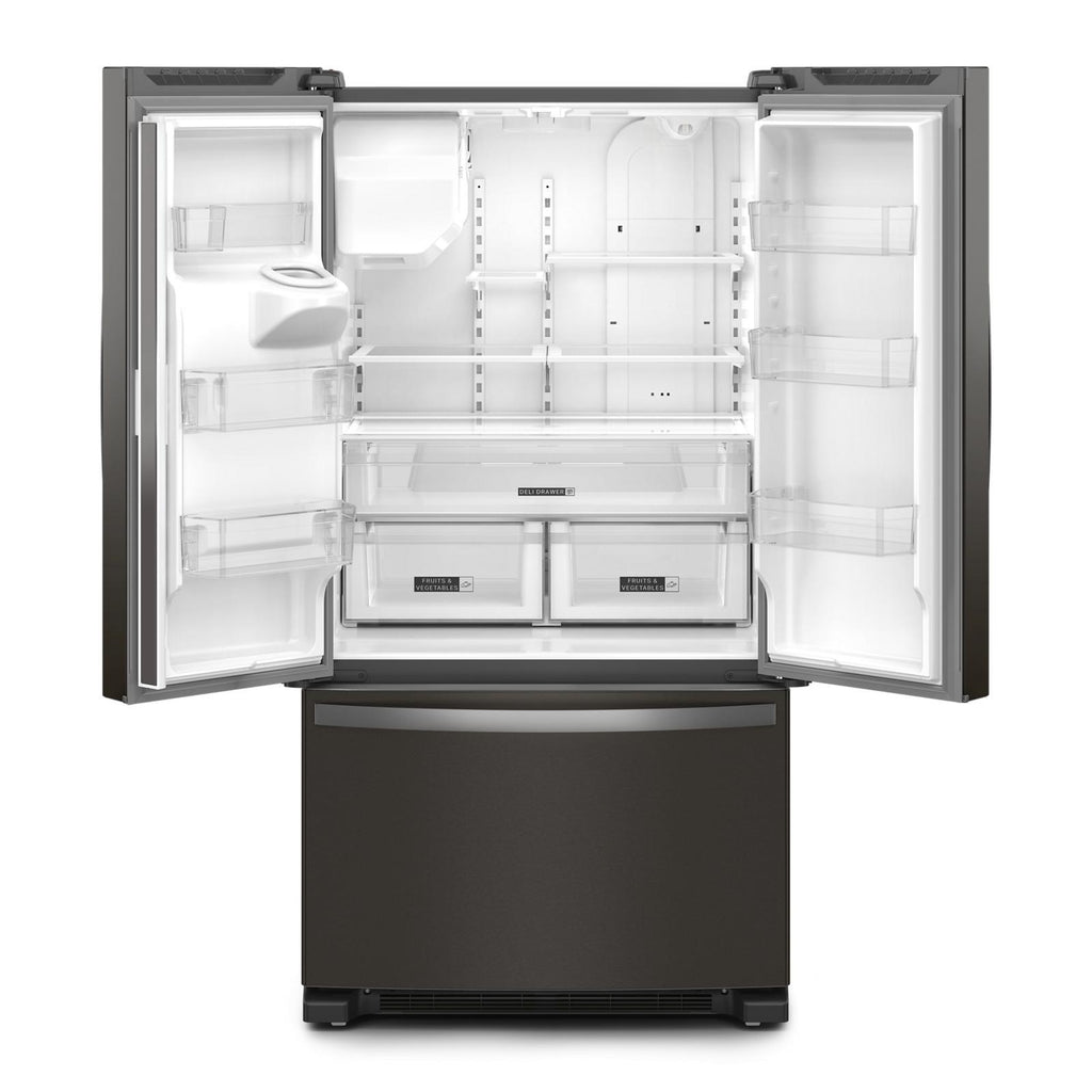 No French Door Bottom Mount Refrigerator in-door ice maker holds more ice. With 3.7lb, your ice maker keeps up with your family.