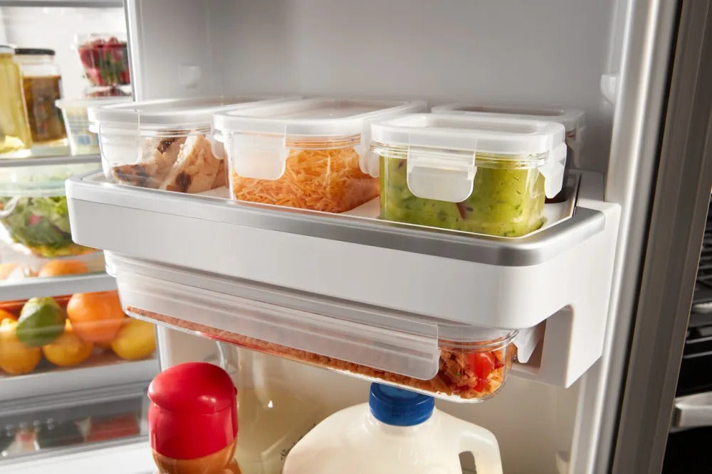 The Prep & Store Shelf keeps leftovers, prepped meals and more easily accessible and right at eye-level. This shelf can be adjusted to fit in any door bin position, so you can organize your fridge any way you like.