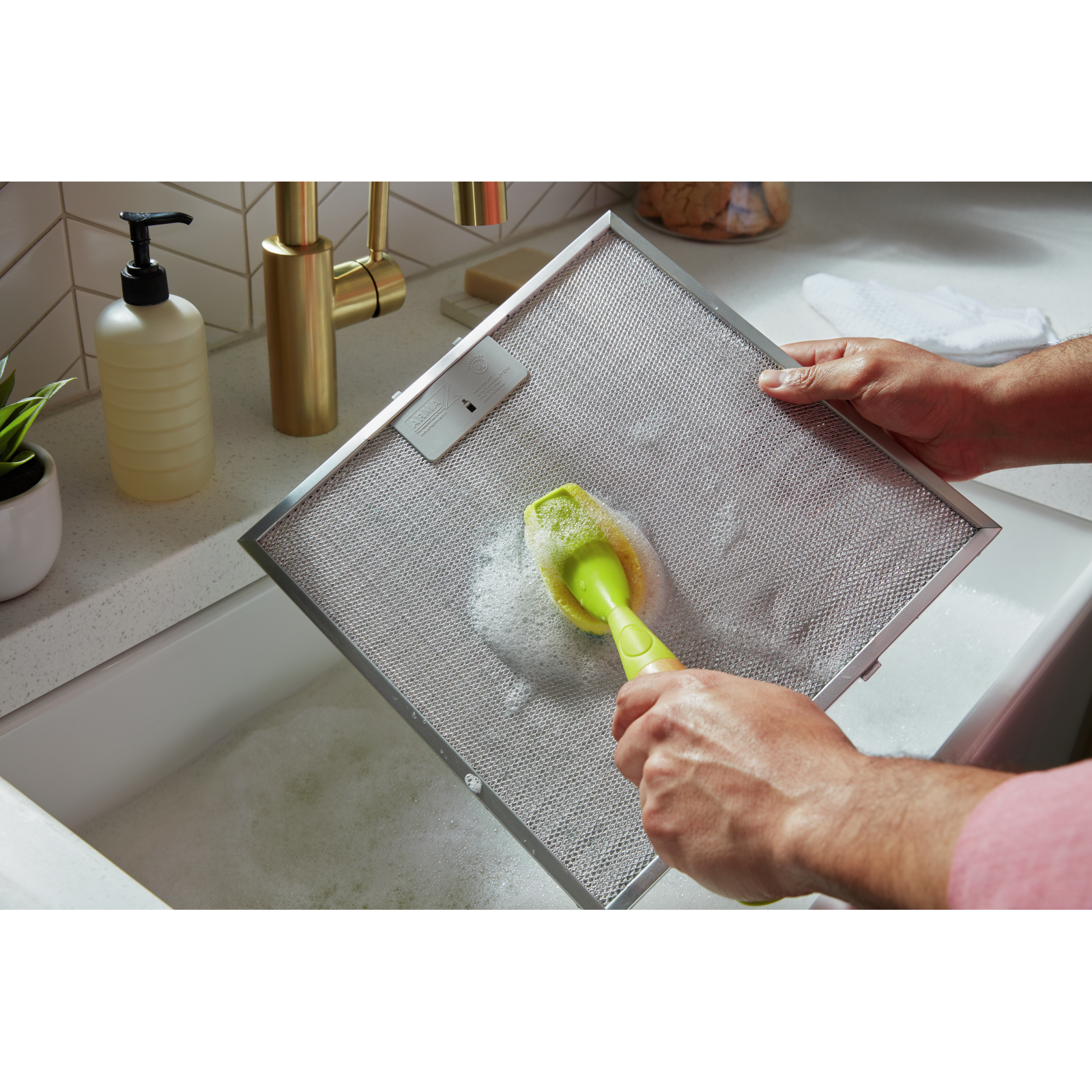 Help trap unwanted grease and remove odors with a filter that unlatches from the hood so you can wash it with soap and water at the sink.