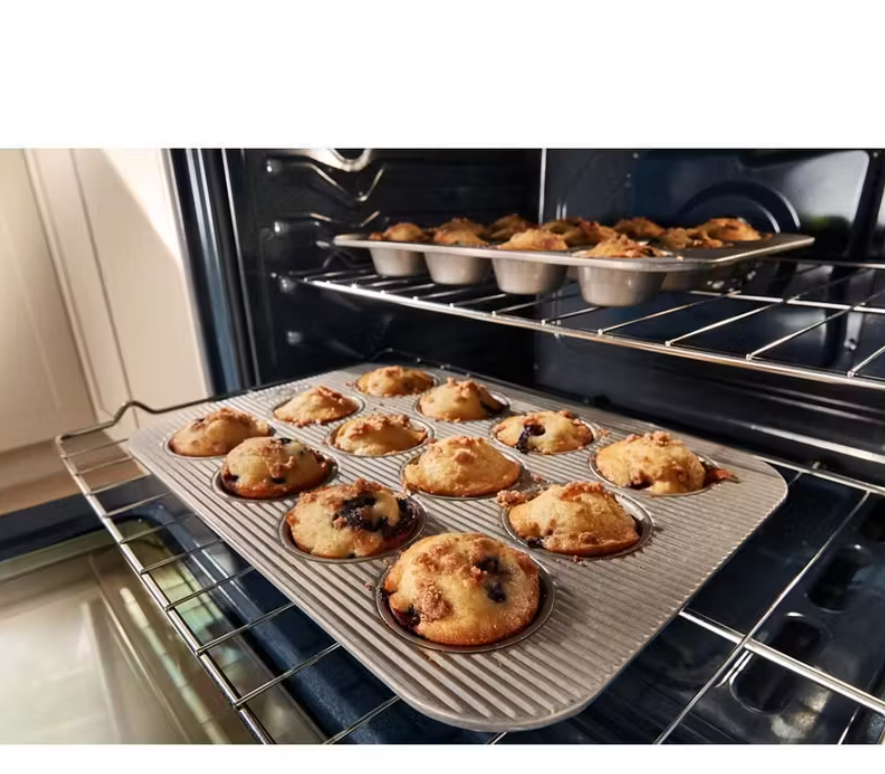 Go from gooey to golden and get even results when baking on multiple racks with Air Baking. Our high-speed fan optimizes air flow and drives consitent heat throughout the oven. Get golden results on breads, pastries and more.