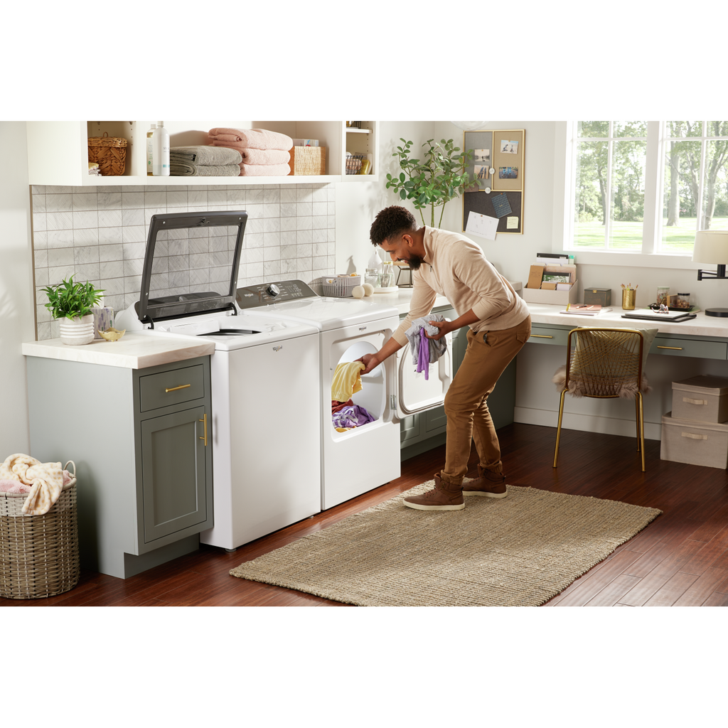 With a 7.0 Cu. Ft. Capacity dryer drum, there?s plenty of room to easily handle the large loads you washed in the matching top load washer.