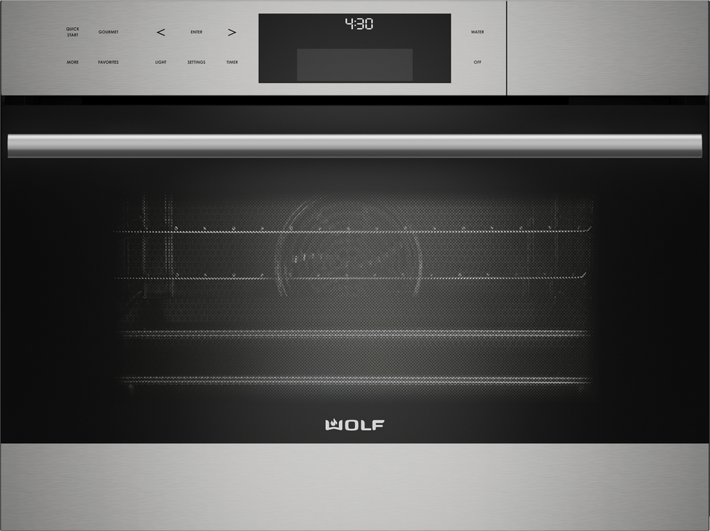 Wolf speed ovens: convection wall ovens with microwave capabilities. The efficient heat distribution and browning capabilities of a convection wall oven paired with the power, speed, and compact size of a microwave oven. Save time in the kitchen while achieving delicious results with this multi-use appliance. Prices are subject to change depending on delivery location.