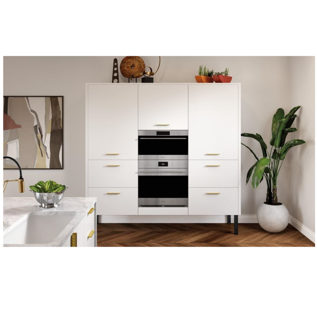 Experience all in one cooking power with the Wolf 30" wide,1.6 cu. ft. speed wall oven, combining microwave, convection, and broil technologies for versatile, oven quality results. With 10 power levels, quick-start modes, and intuitive Gourmet Mode, every meal comes out consistently delicious. The spacious stainless-steel interior fits a 9x13 pan, while dual racks and risers enhance airflow and browning. A sleek 8" full color LCD touchscreen offers customizable, guided controls, complemented by a luxurious soft-open/soft close door and elegant design that integrates seamlessly with other Wolf appliances.