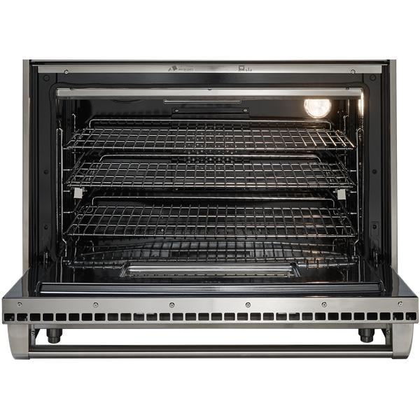 Four dual-stacked burners give you the highest highs down to the lowest lows, while an infrared charbroiler whips up succulent steaks, chops and more. Down below, the spacious gas convection oven provides even, consistent heat across all racks, with none of the hot and cold spots that can make roasting or baking such an iffy proposition. It even has an infrared broiler that sears quickly and evenly - can't you just taste the tenderloin? . Prices are subject to change depending on delivery location.